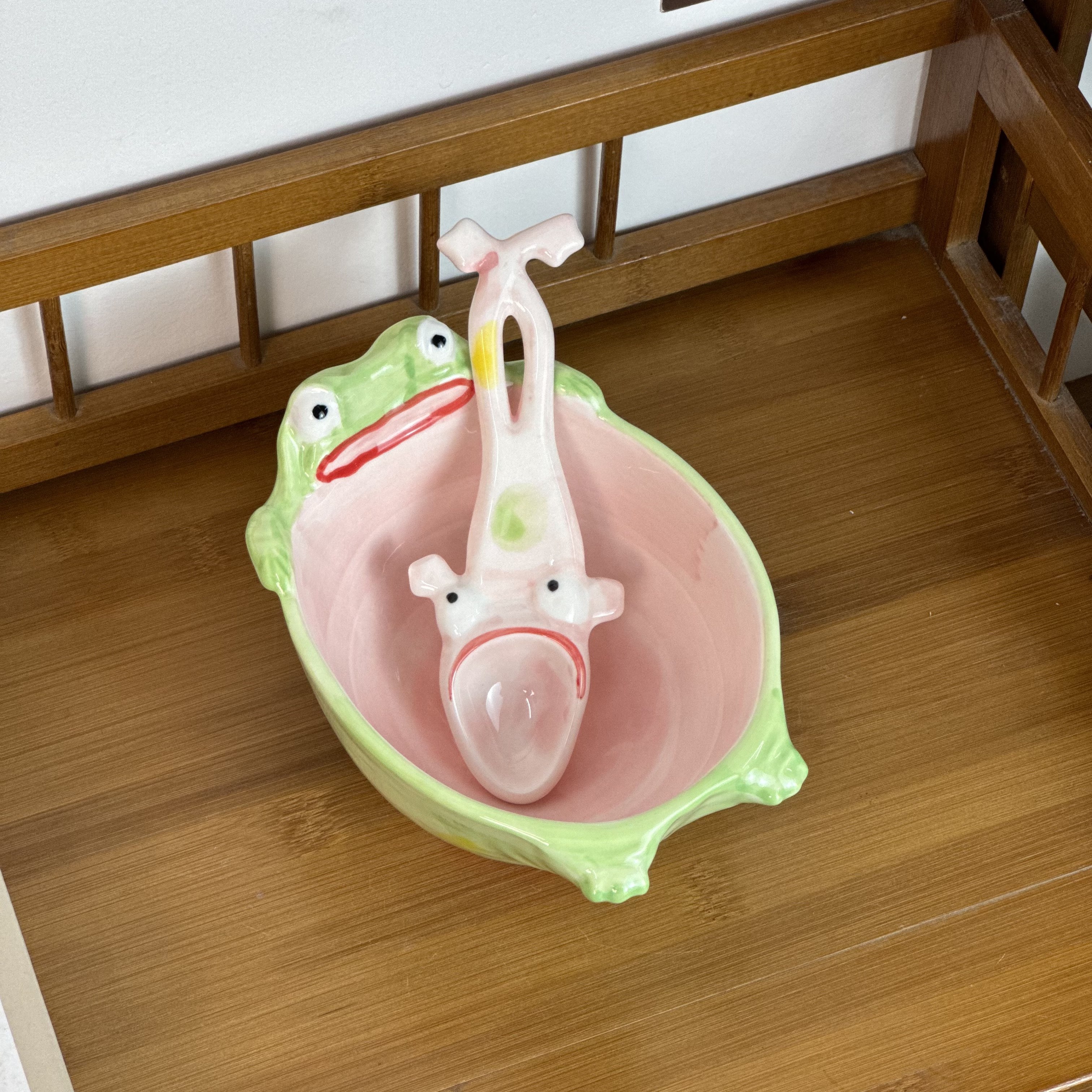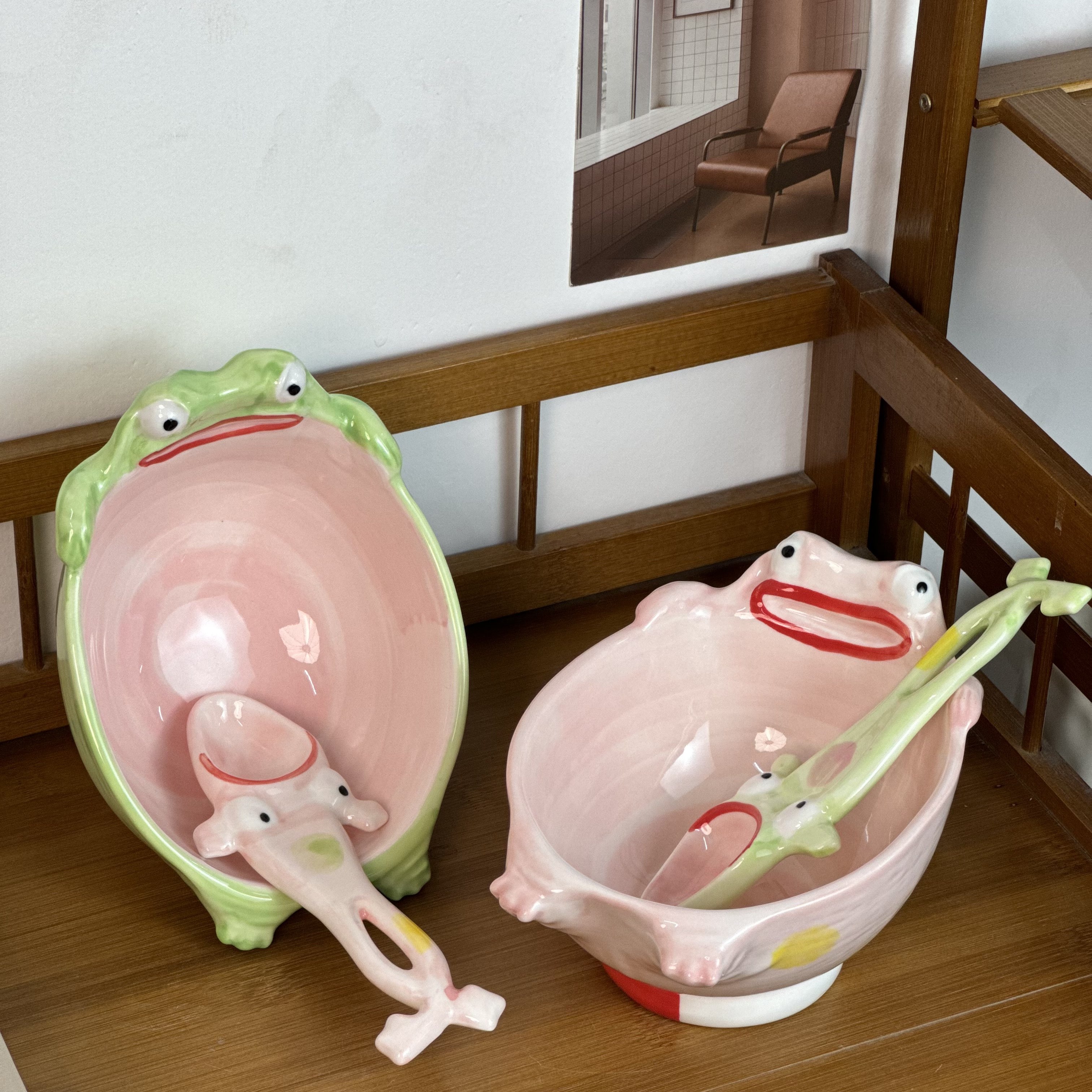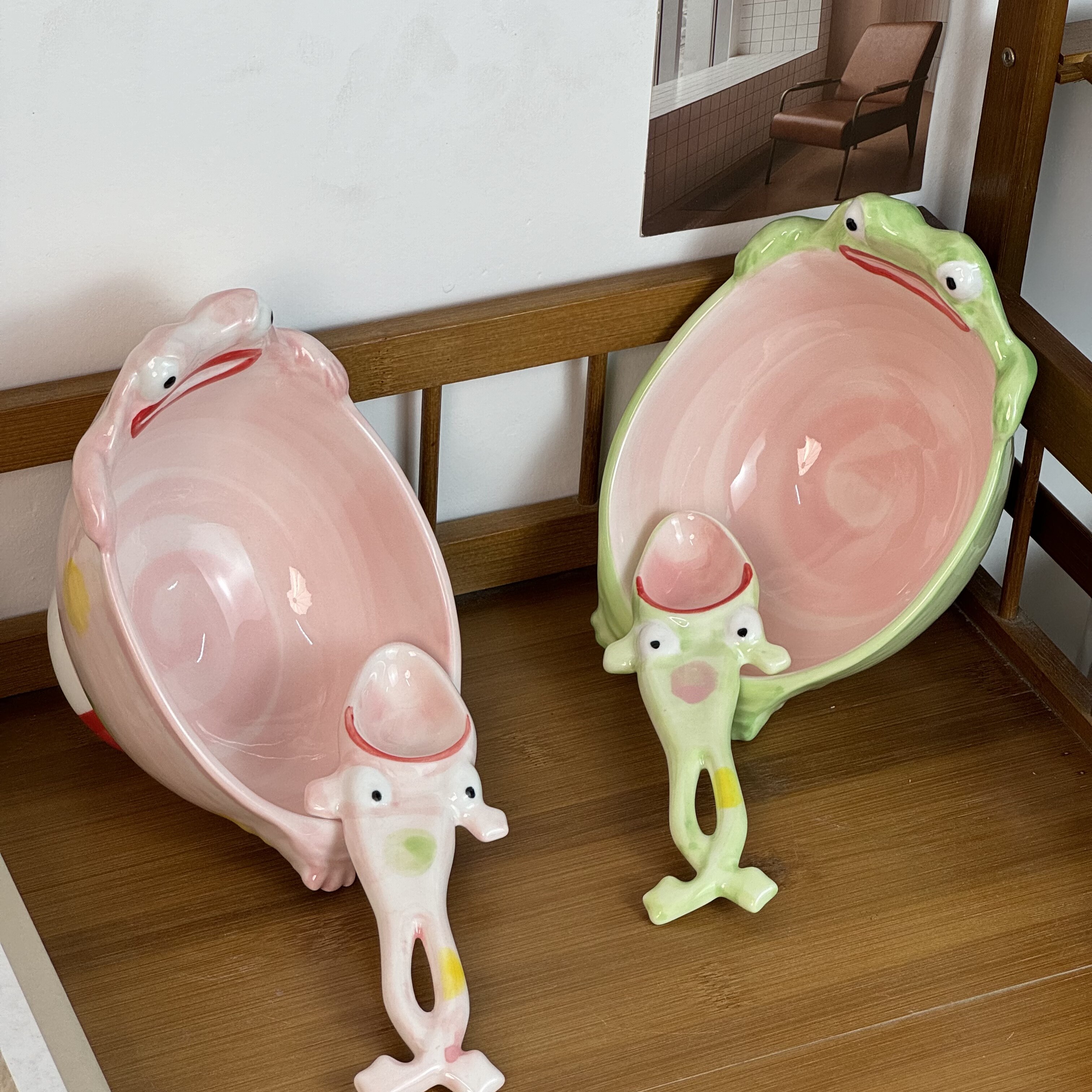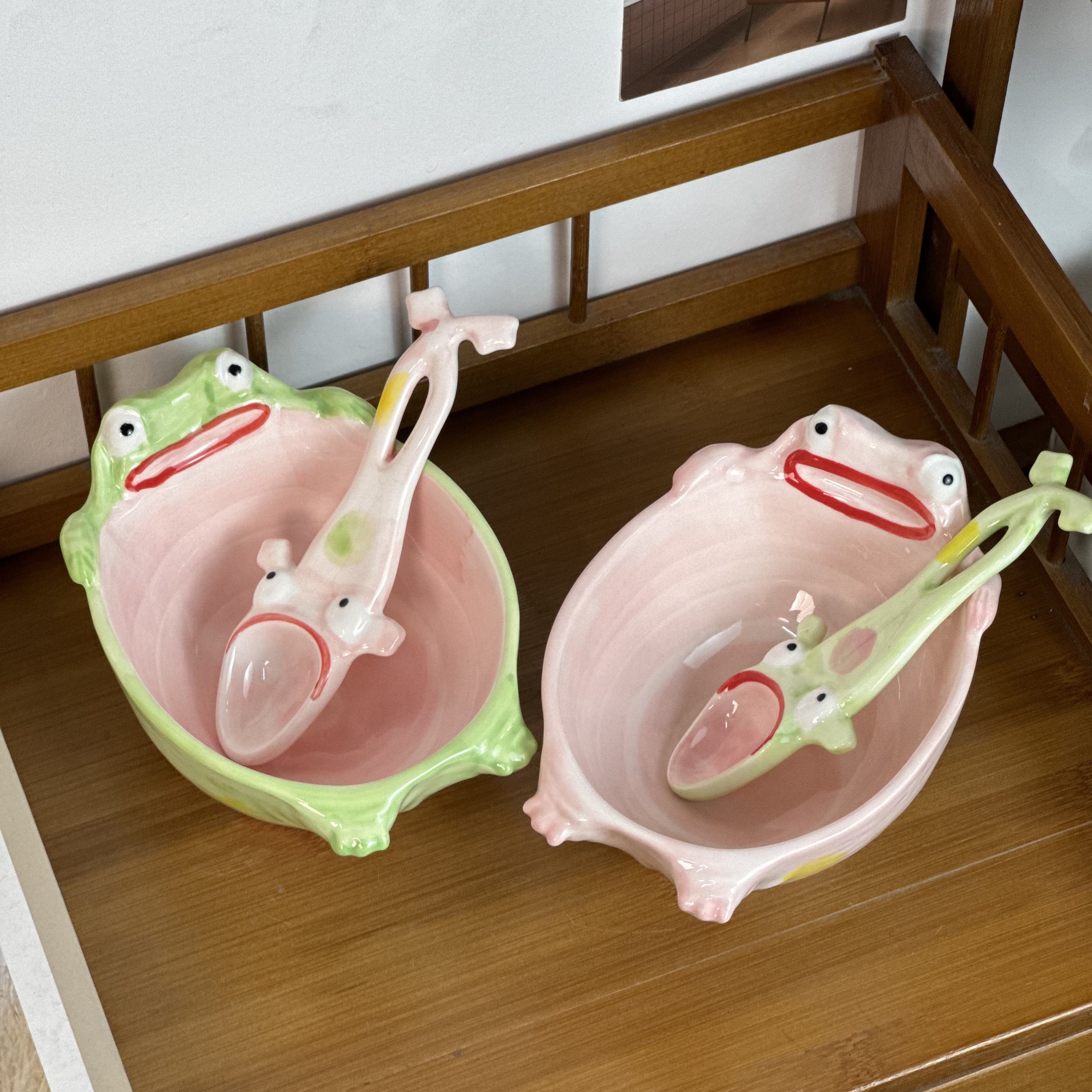 抽象搞怪青蛙碗陶瓷情侣碗家用饭碗送礼礼物高颜值勺子整套甜品碗