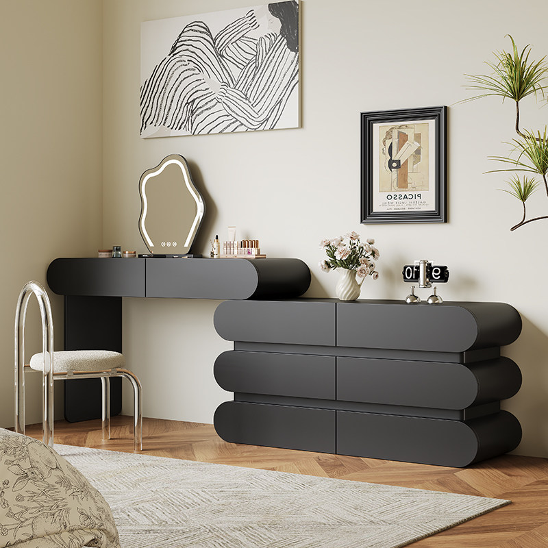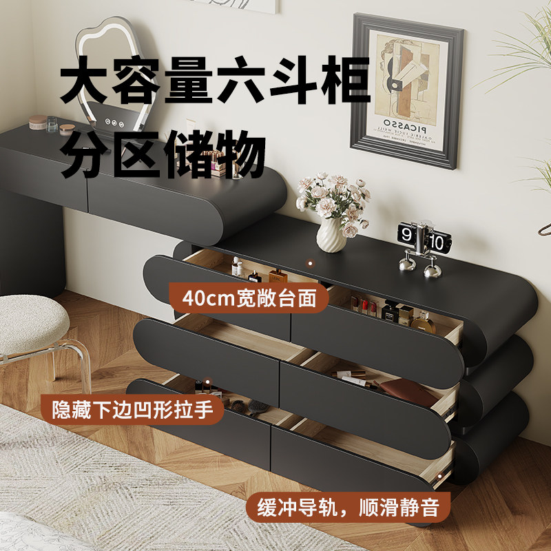 实木梳妆台卧室现代简约化妆桌法式奶油风黑色转角梳妆台斗柜一体