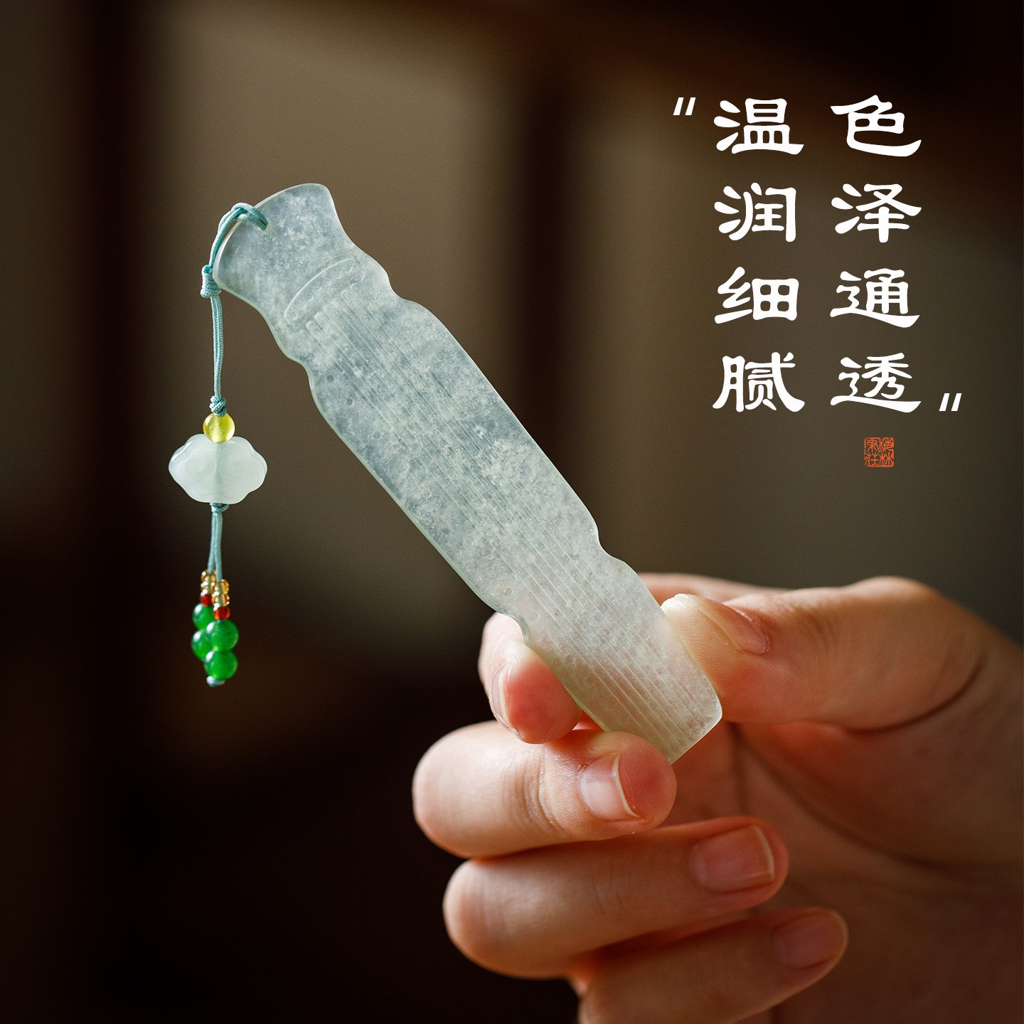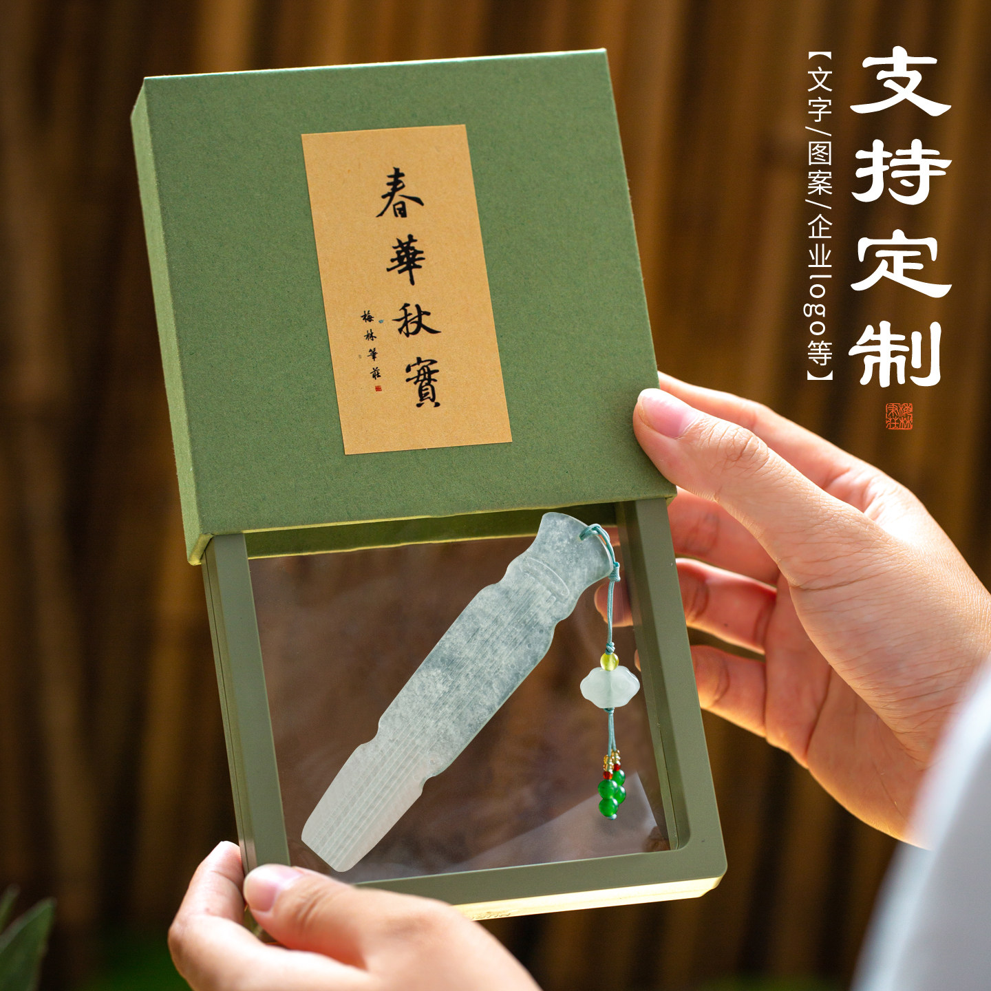 马年新年玉石岫玉书签精美高颜值古风礼物高档精致古典创意国风古琴生日文创纪念品定制礼盒装实用高级轻奢感