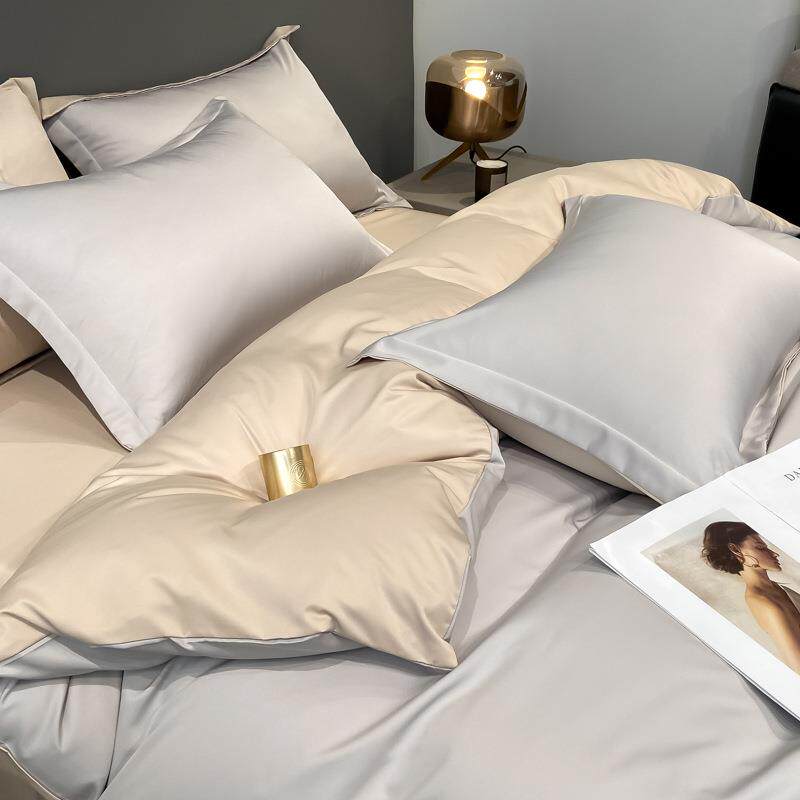 新款亲肤凉感天丝四件套夏季简约纯色床单床笠冰丝套件