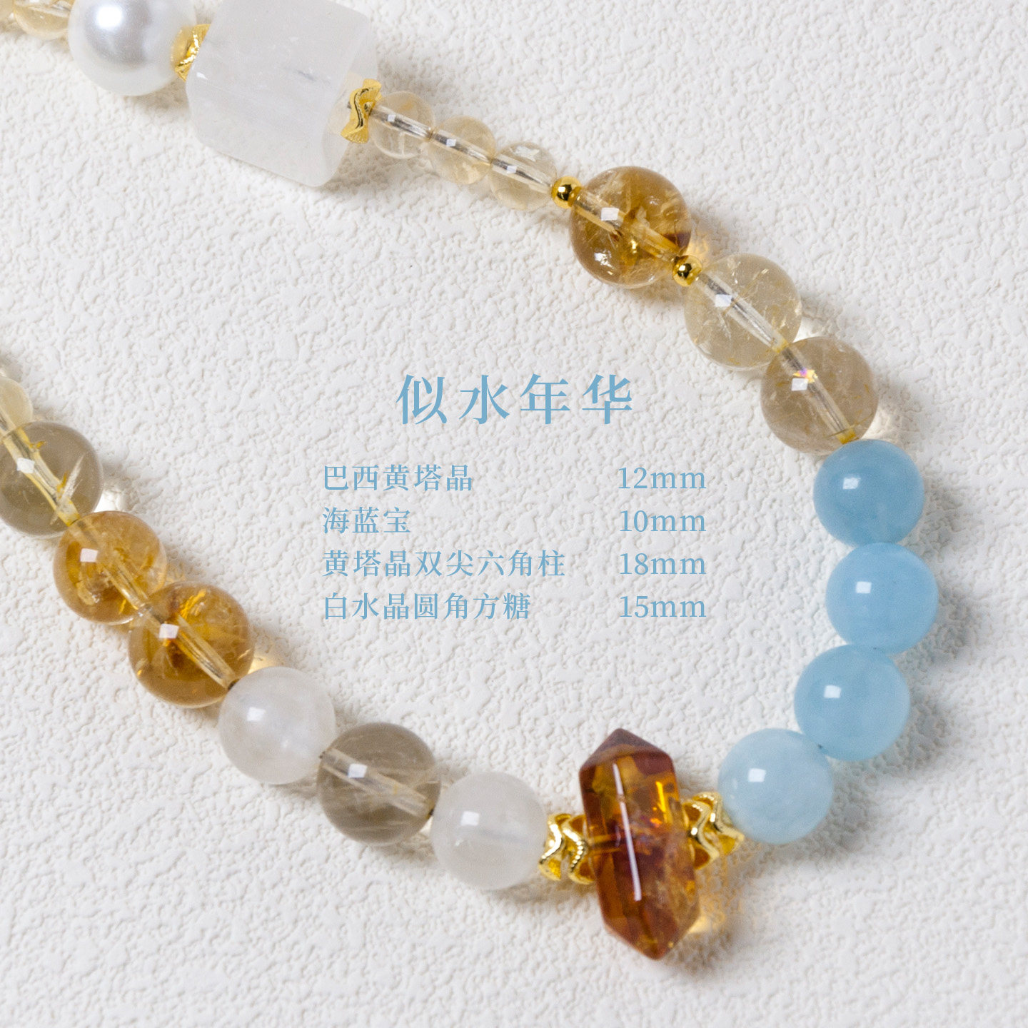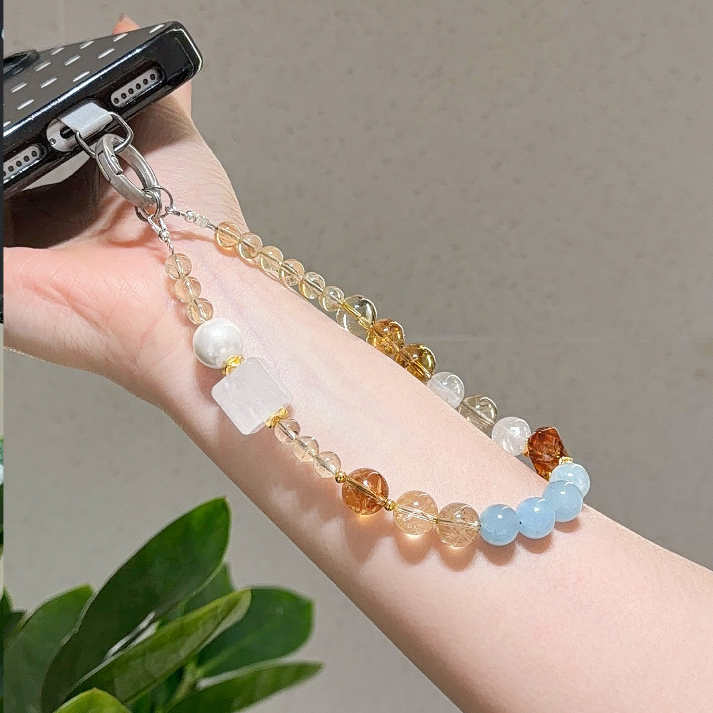 似水年华喜水天然海蓝宝黄塔晶白水晶手机链垫片挂绳配饰手链招财