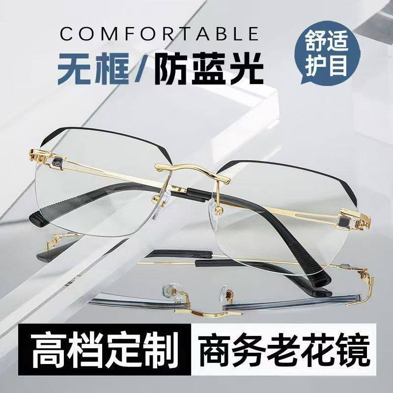 高档老人老花眼镜防蓝光超轻无边框高清减龄老花镜无框新款抗疲劳