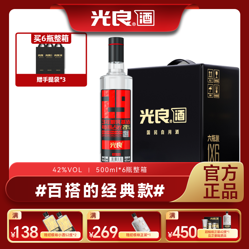 官方正品光良白酒2942度浓香型纯粮食高粱酒500ml每瓶酒业整箱