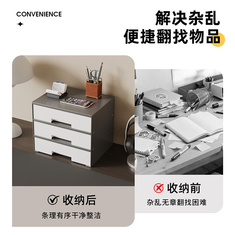 桌面文件柜三层抽屉式资料柜办公写字台收纳盒立式置物架学生宿舍分层整理储物柜书房大容量办公用品大全神器