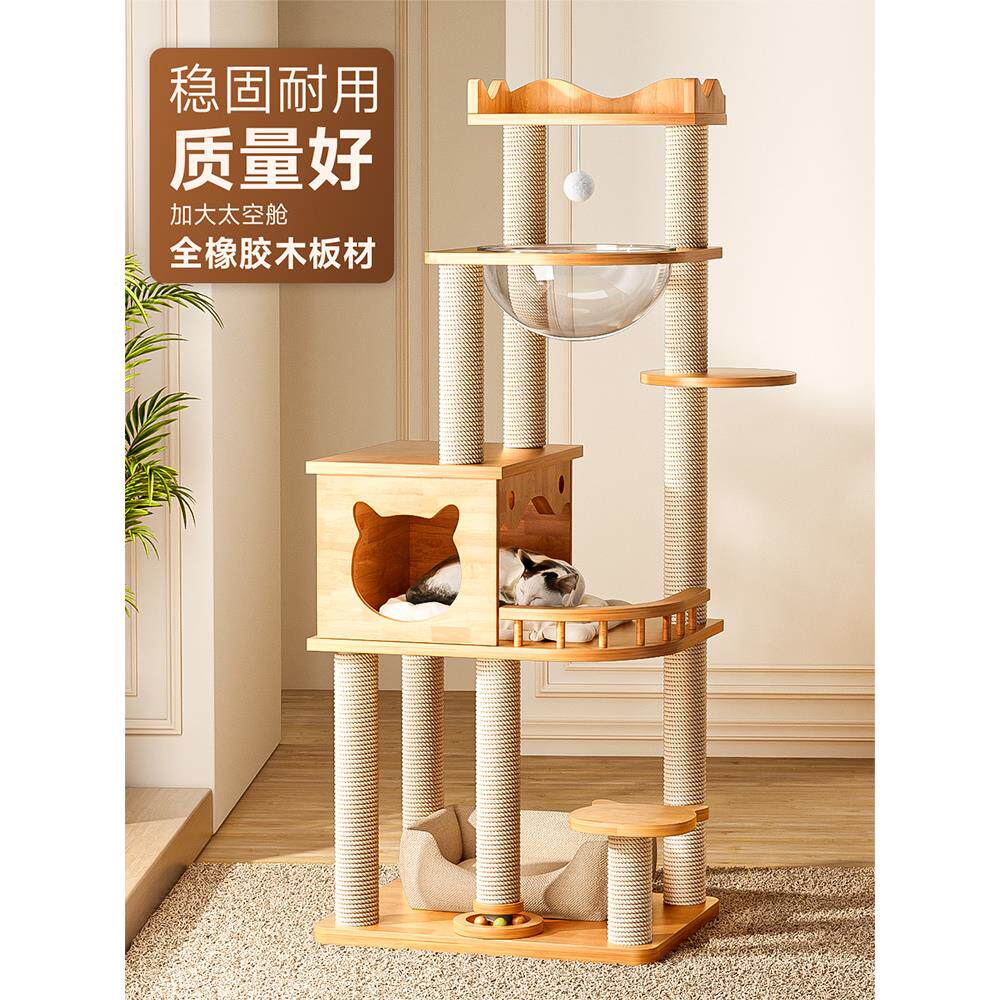 猫爬687架猫猫木树一体窝太空舱实猫爬架子通天猫跳台猫柱抓柱猫