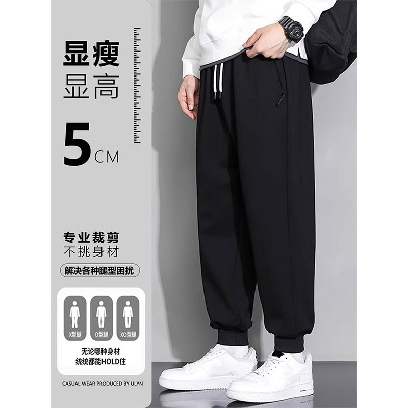准者直筒宽松运动长裤秋冬新款男士休闲跑步篮球黑色针织加绒卫裤