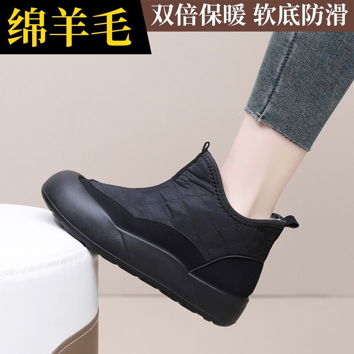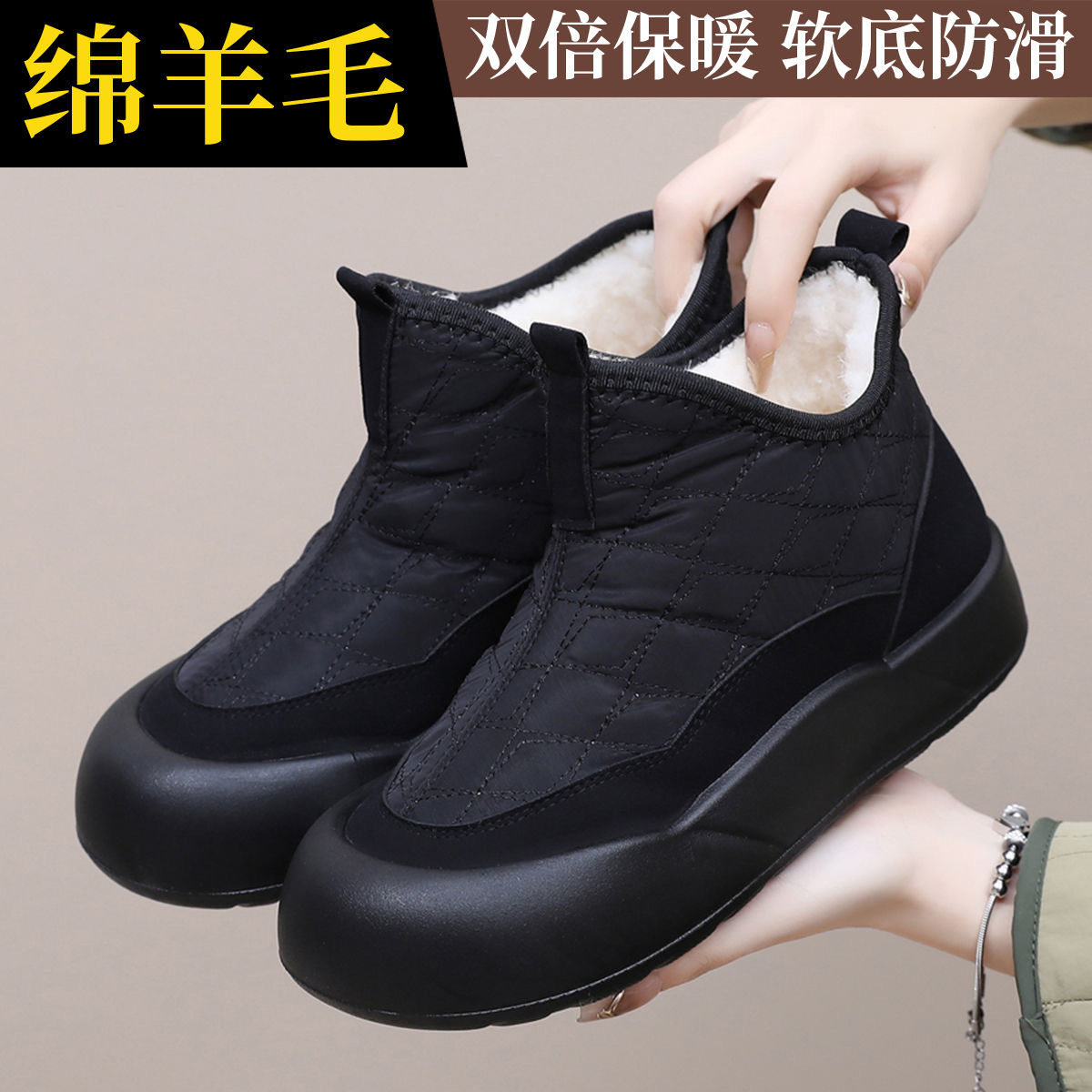 低帮厚底雪地靴女2025新款冬季懒人一脚蹬毛毛棉鞋加绒加厚女鞋子
