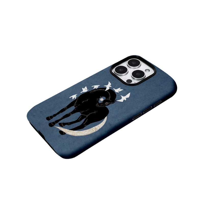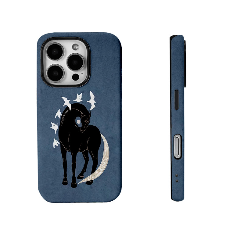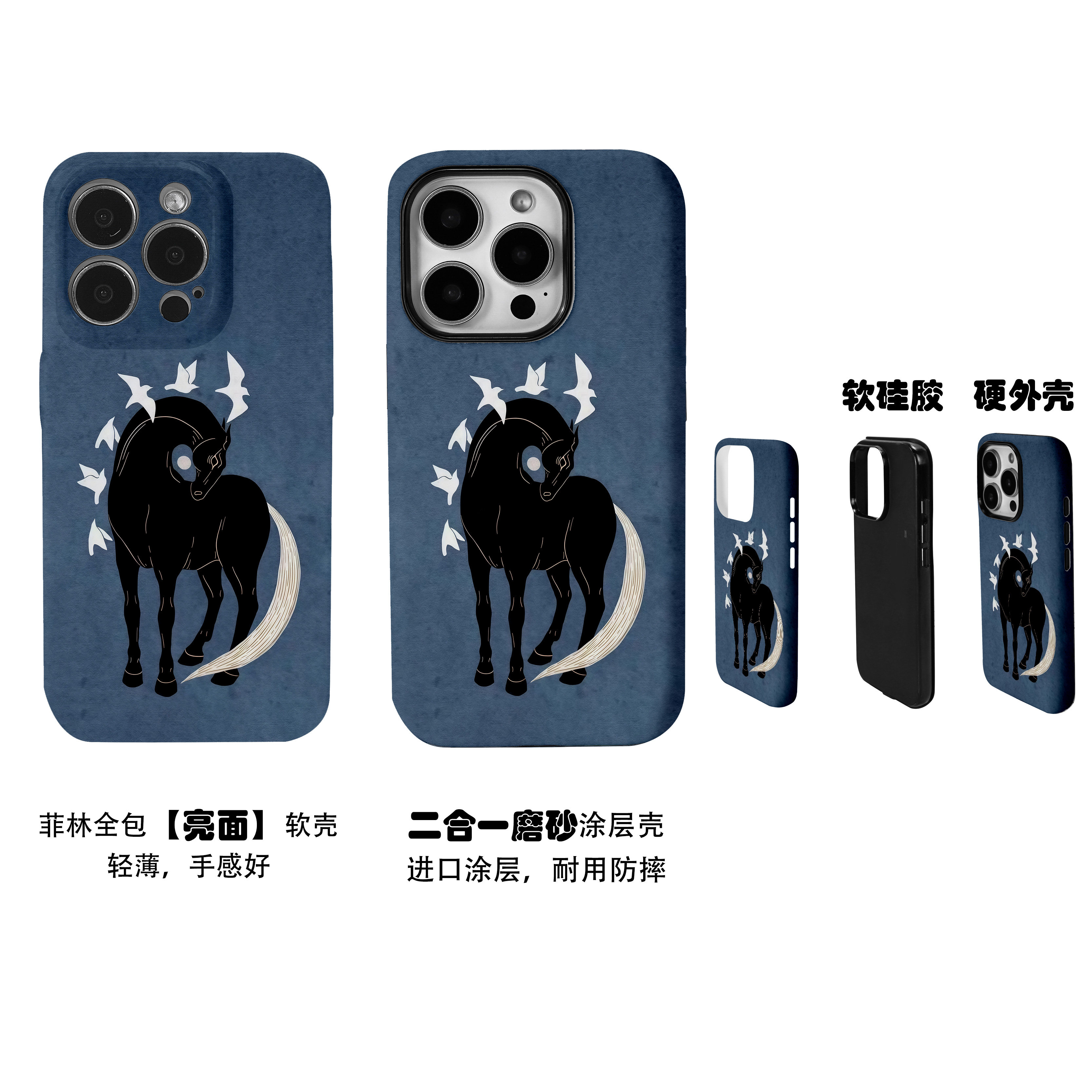 马年新年白鸟环绕黑马菲林二合一手机壳适用苹果17nova14华为p70mate60小米15opporen14ovivo荣耀300iPhone16