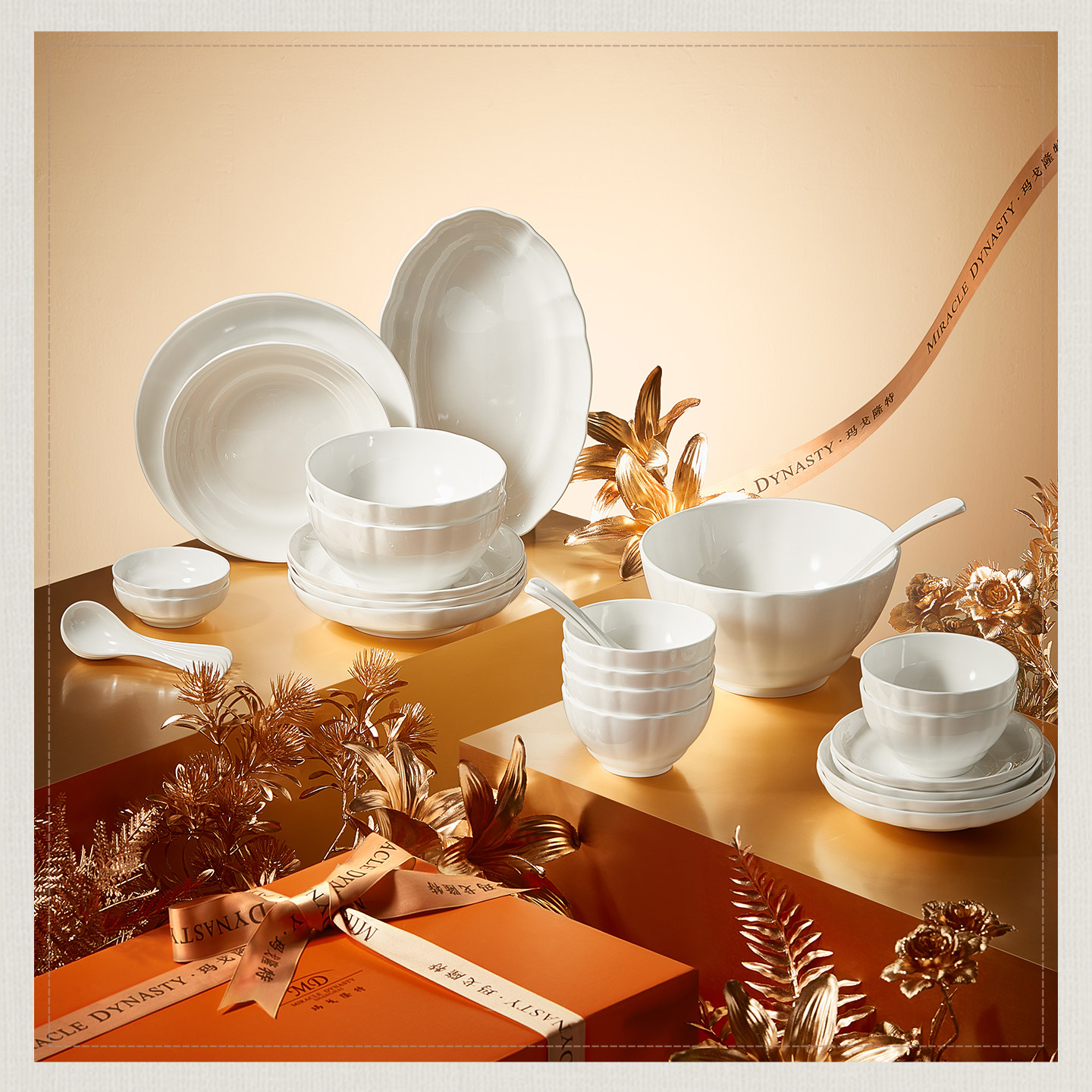 玛戈隆特海棠本色白瓷餐具套装家用碗碟盘子碗具陶瓷碗碟套装家用