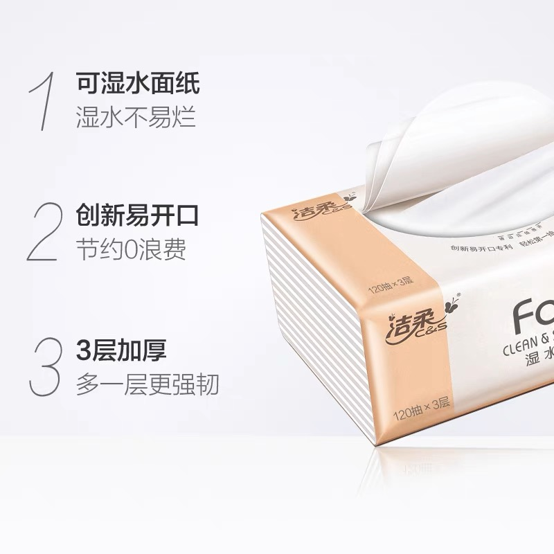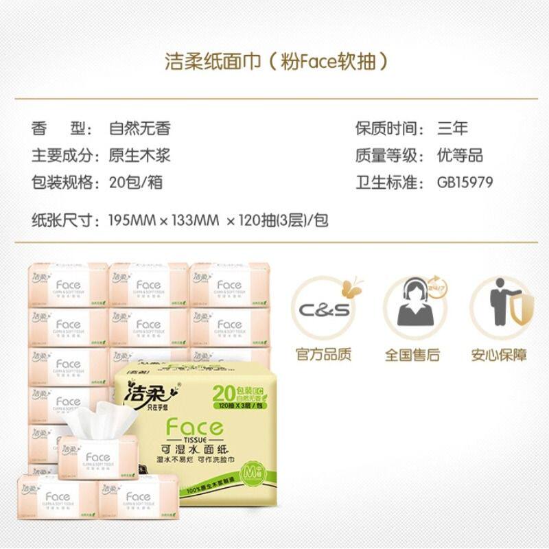 洁柔抽纸120抽3层20包可湿水家用餐巾纸面巾纸卫生纸双11精选