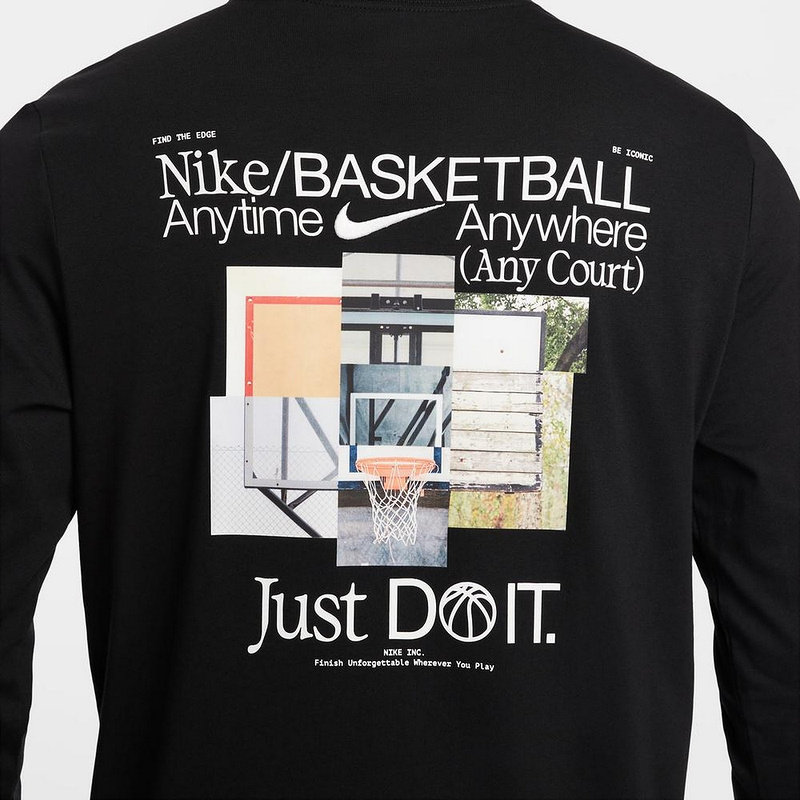 Nike耐克男子运动打底套头衫篮球印花棉质黑色长袖T恤HV1771-010