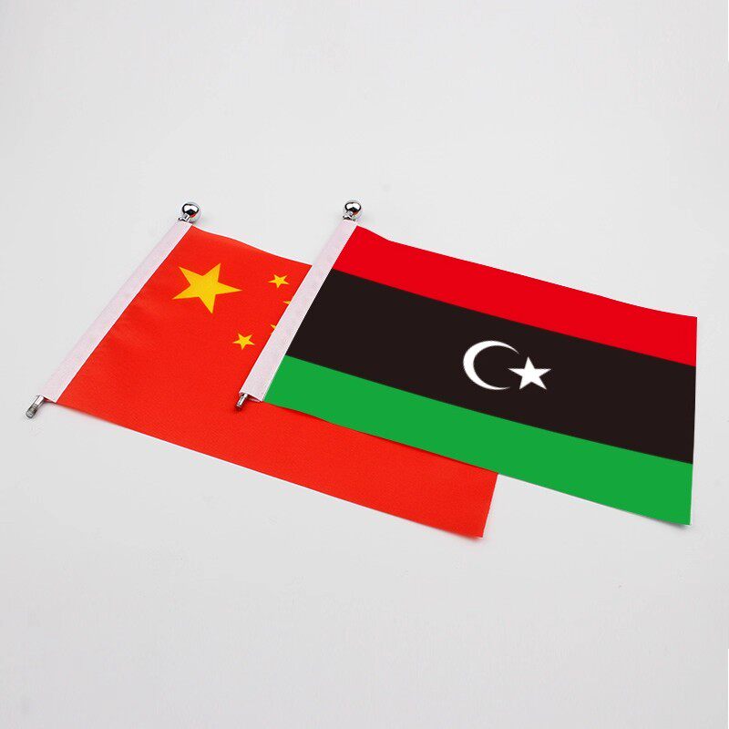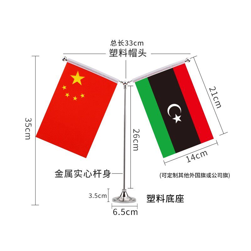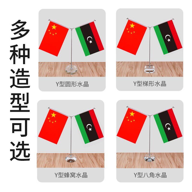 Y型中国利比亚桌旗国旗摆件谈判签字签约旗小红旗台旗办公室装饰