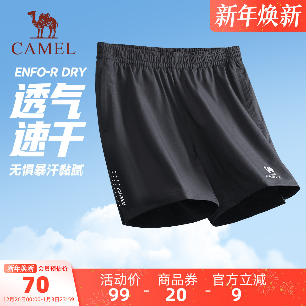 骆驼运动短裤男速干夏季新薄款透气休闲健身户外跑步休闲五分裤女