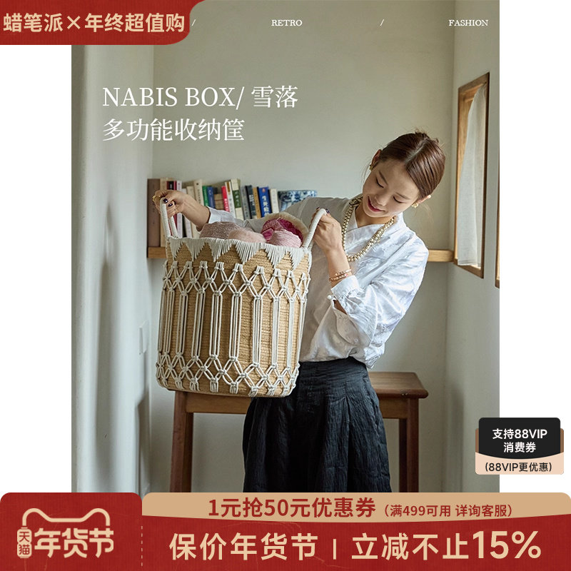 蜡笔派雪落收纳筐棉绳编织新款收纳篮氛围感脏衣篓高级家用收纳箱