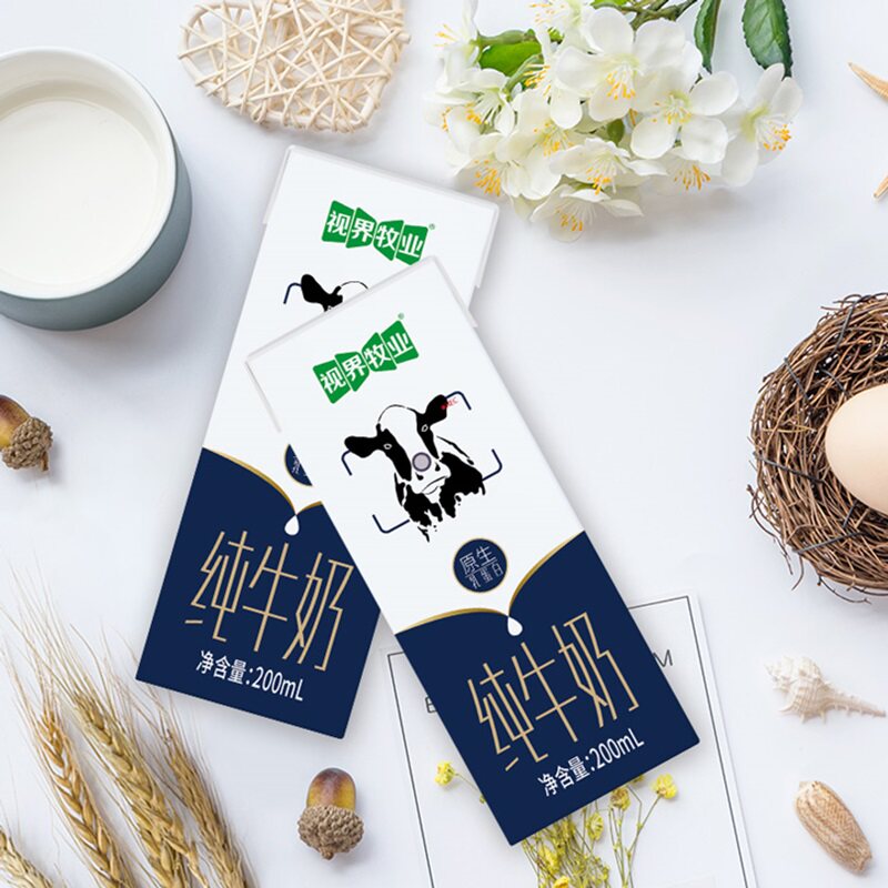 视界牧业全脂纯牛奶200ml*6盒健康营养早餐奶试喝装