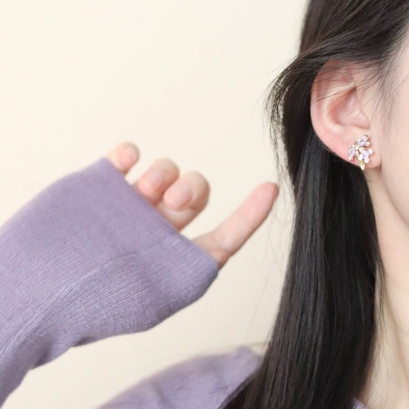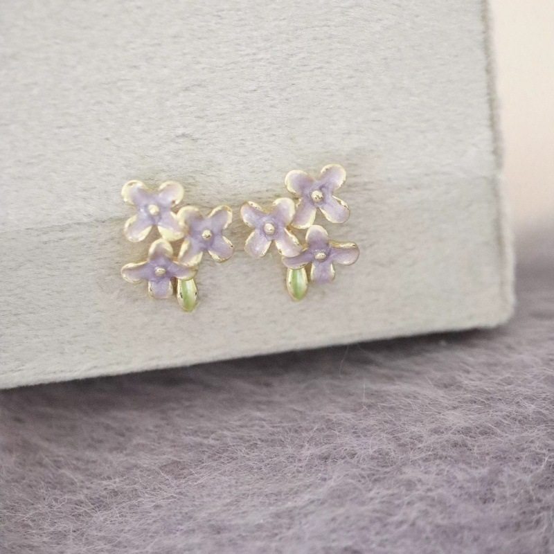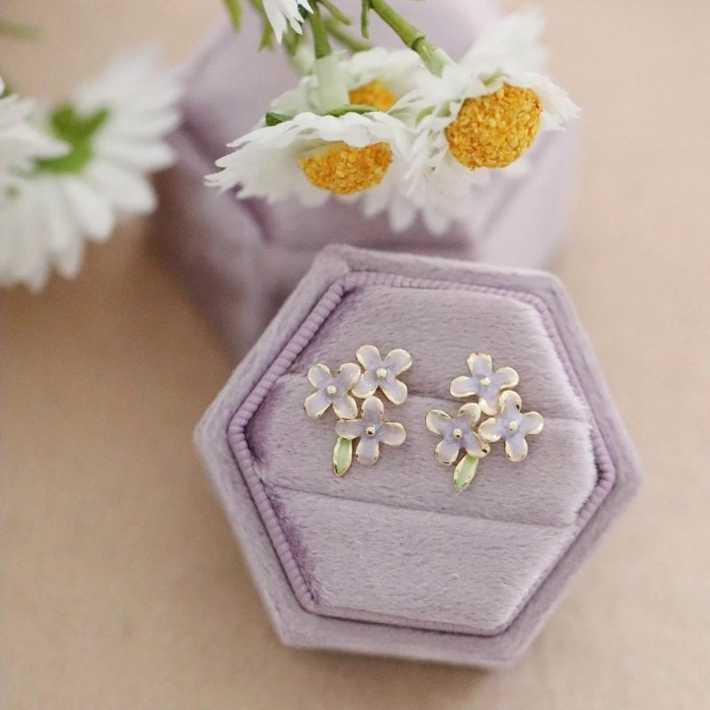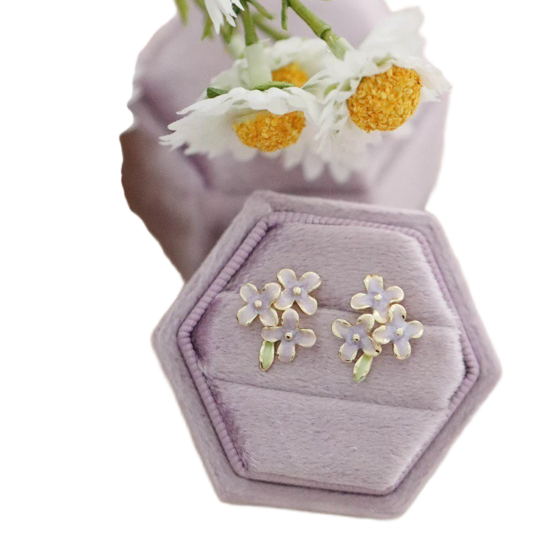 夏天甜美紫色珐琅花朵仙气耳环森系艺术生耳钉女小巧精致耳饰品