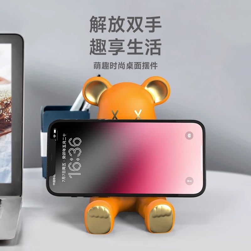 暴力熊手机支架桌面摆件可爱学生卡通支架办公室装饰个性创意工艺