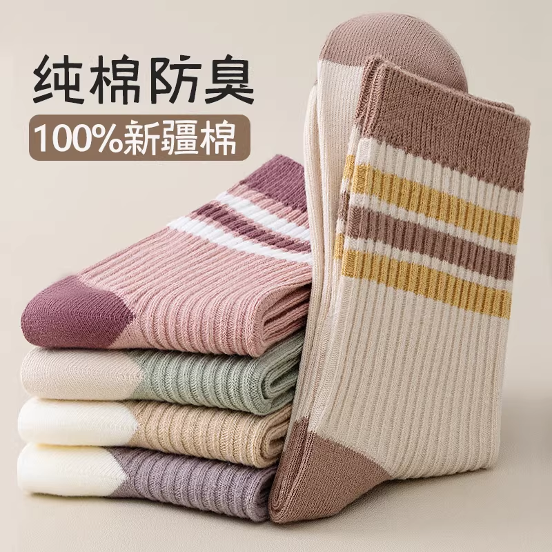 防臭棉袜子女款春秋季中筒袜纯棉新疆全棉夏季爆款配鲨鱼裤抗菌