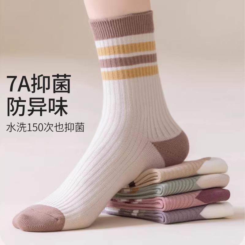 袜子女款纯棉中筒袜秋冬季抗菌防臭吸汗运动棉袜春秋款无骨短筒袜