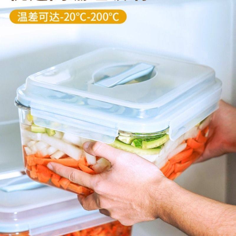 2.5L大容量玻璃保鲜盒泡菜专用食品级韩国辣白菜冰箱收纳容器三格