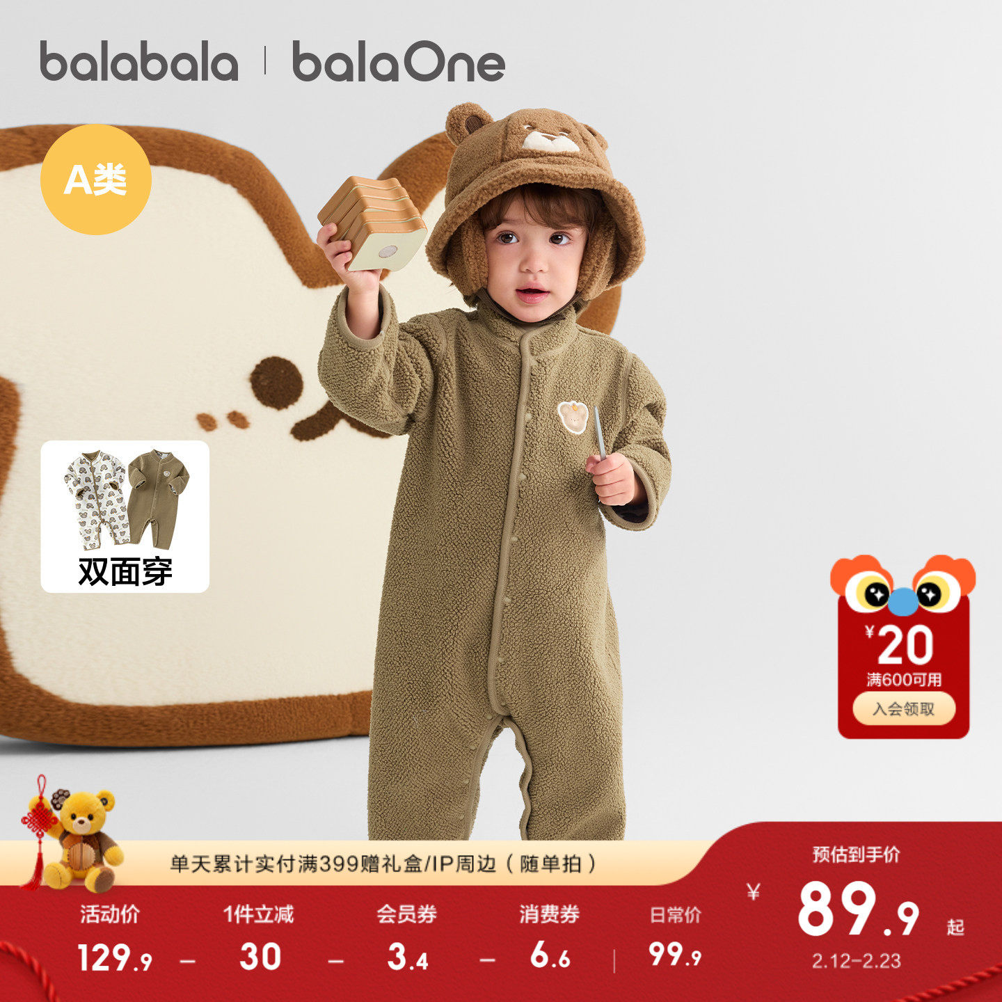 巴拉巴拉新生婴儿连体衣2025新款秋冬宝宝包屁衣爬服加绒两面穿萌