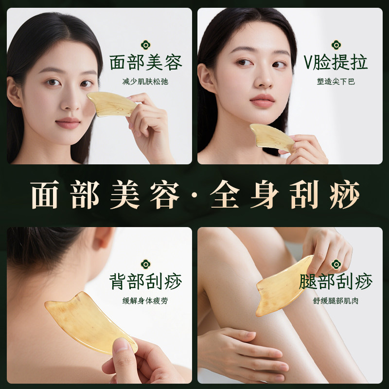 牛角刮痧板面部按摩梳美容脸部专用刮板眼肩颈背部拨筋棒全身通用