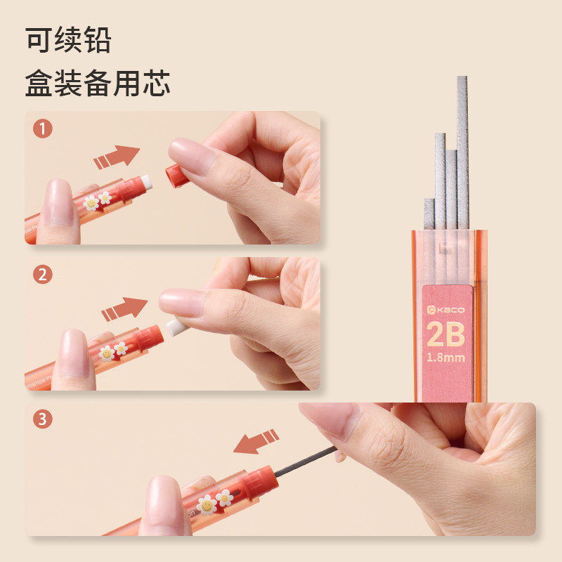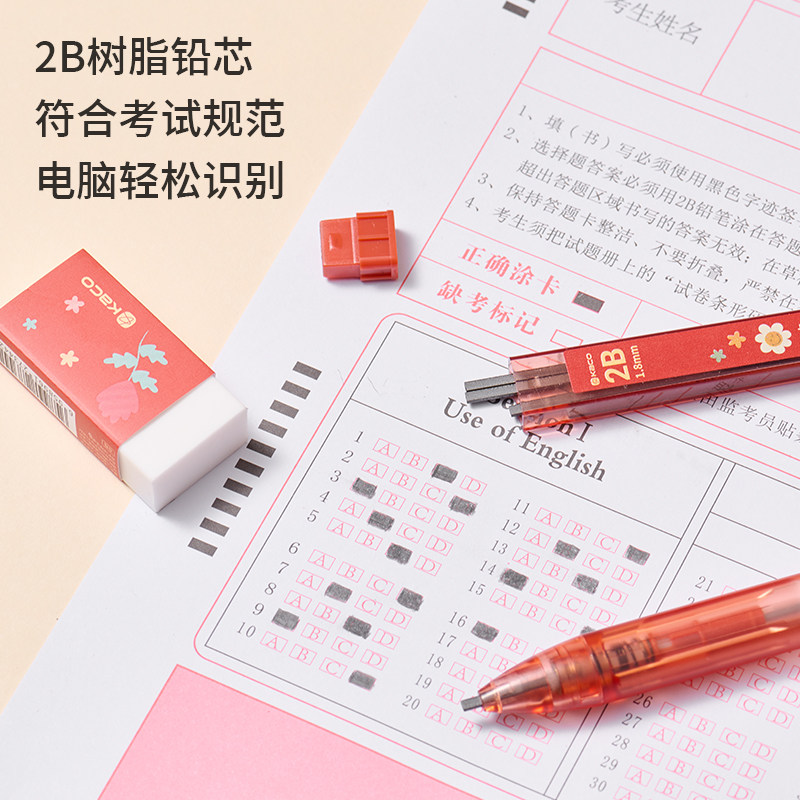 KACO快乐园丁SMILEYWORLD限定涂卡自动铅笔套装2B学生用考研答题卡中考涂卡铅芯高考专用考试文具橡皮组合