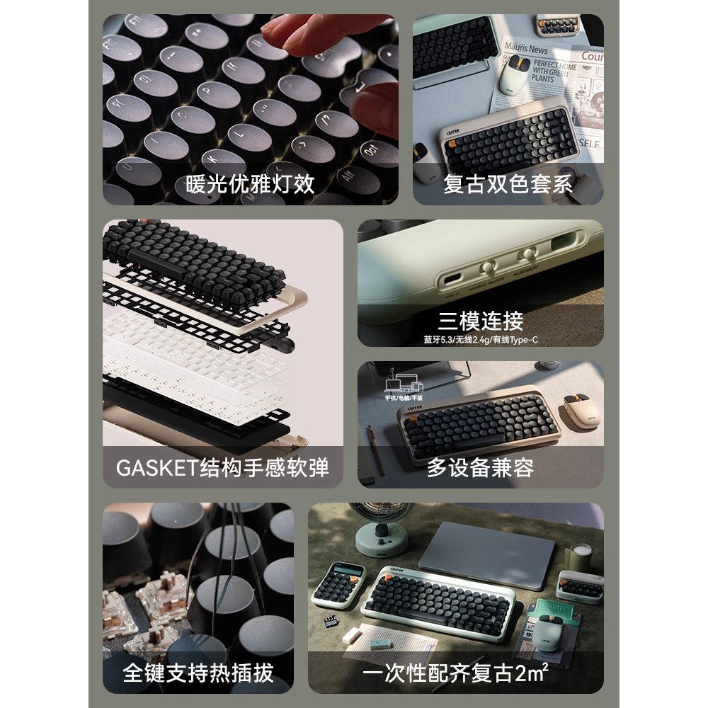 洛斐1970s奶昔橄榄机械键盘蓝牙无线mac笔记本电脑iPad平板键盘