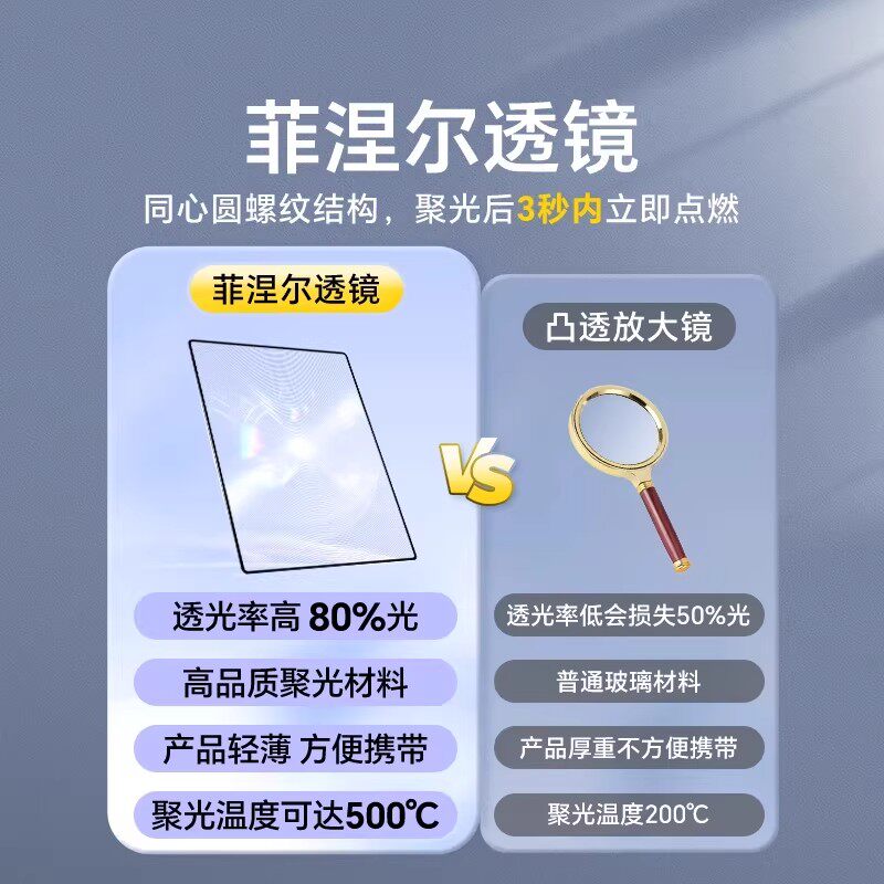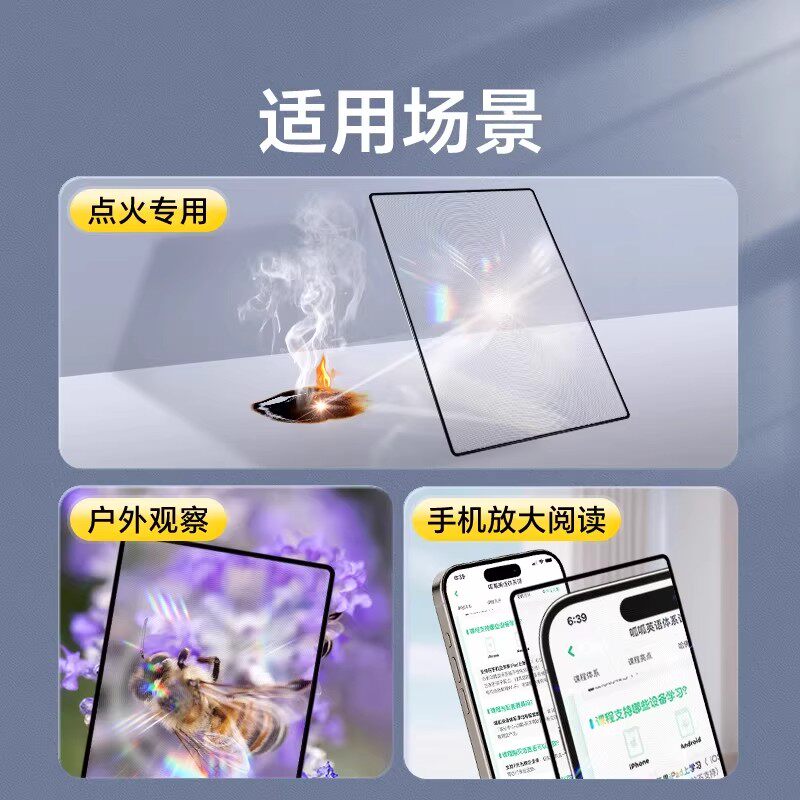 菲涅尔透镜户外取火野外生火放大镜聚光便携卡片随身携带阅读专用