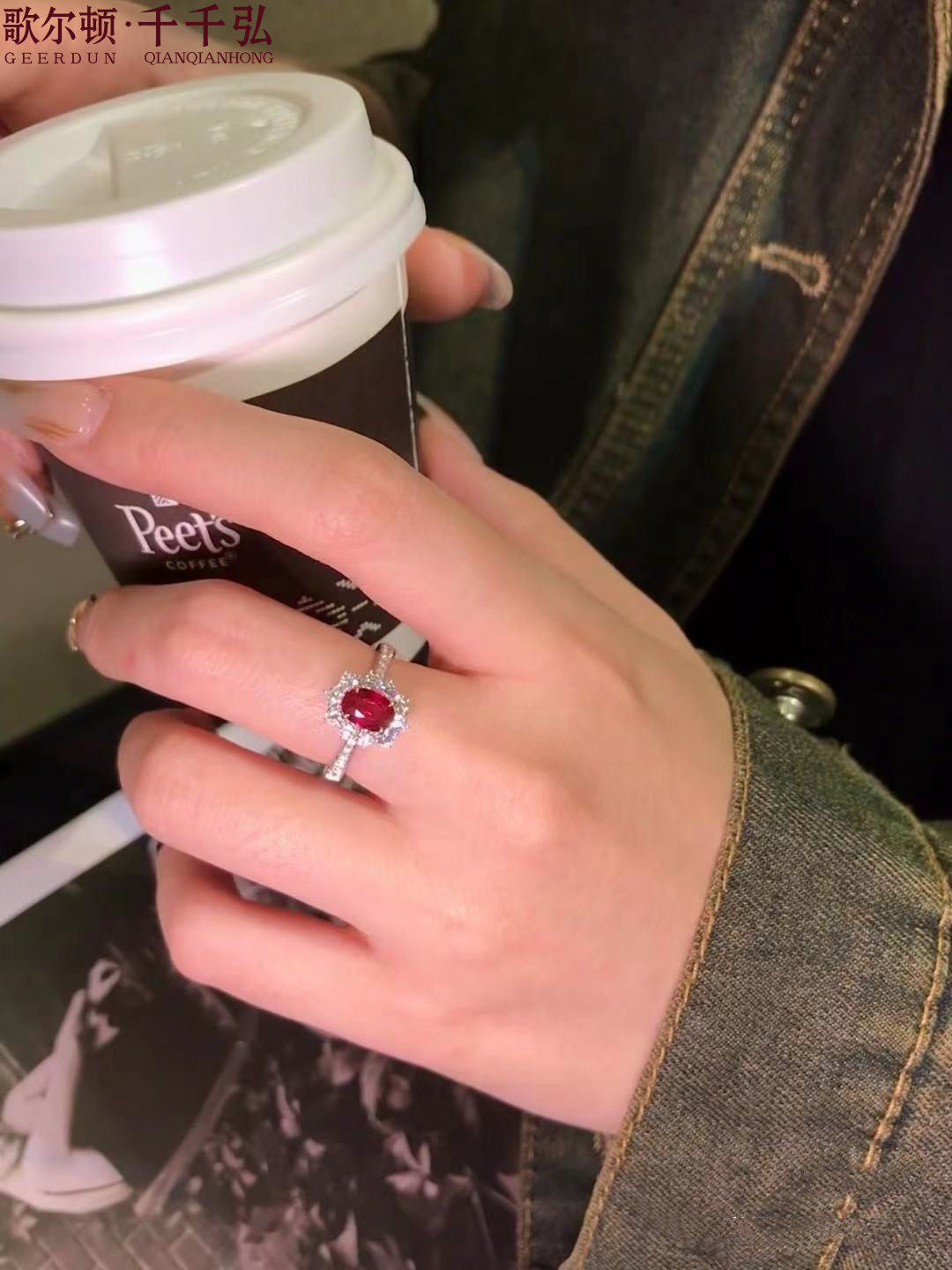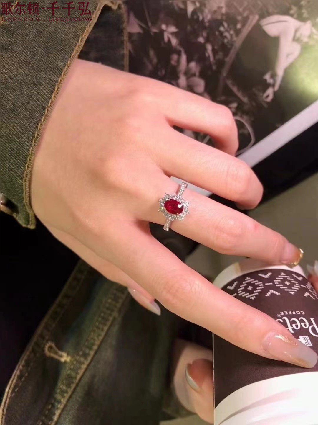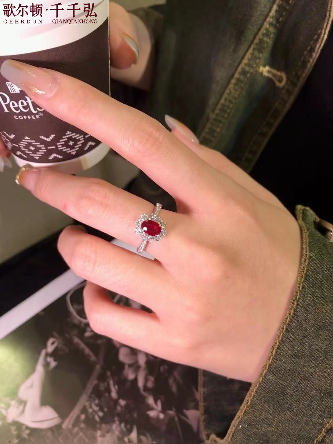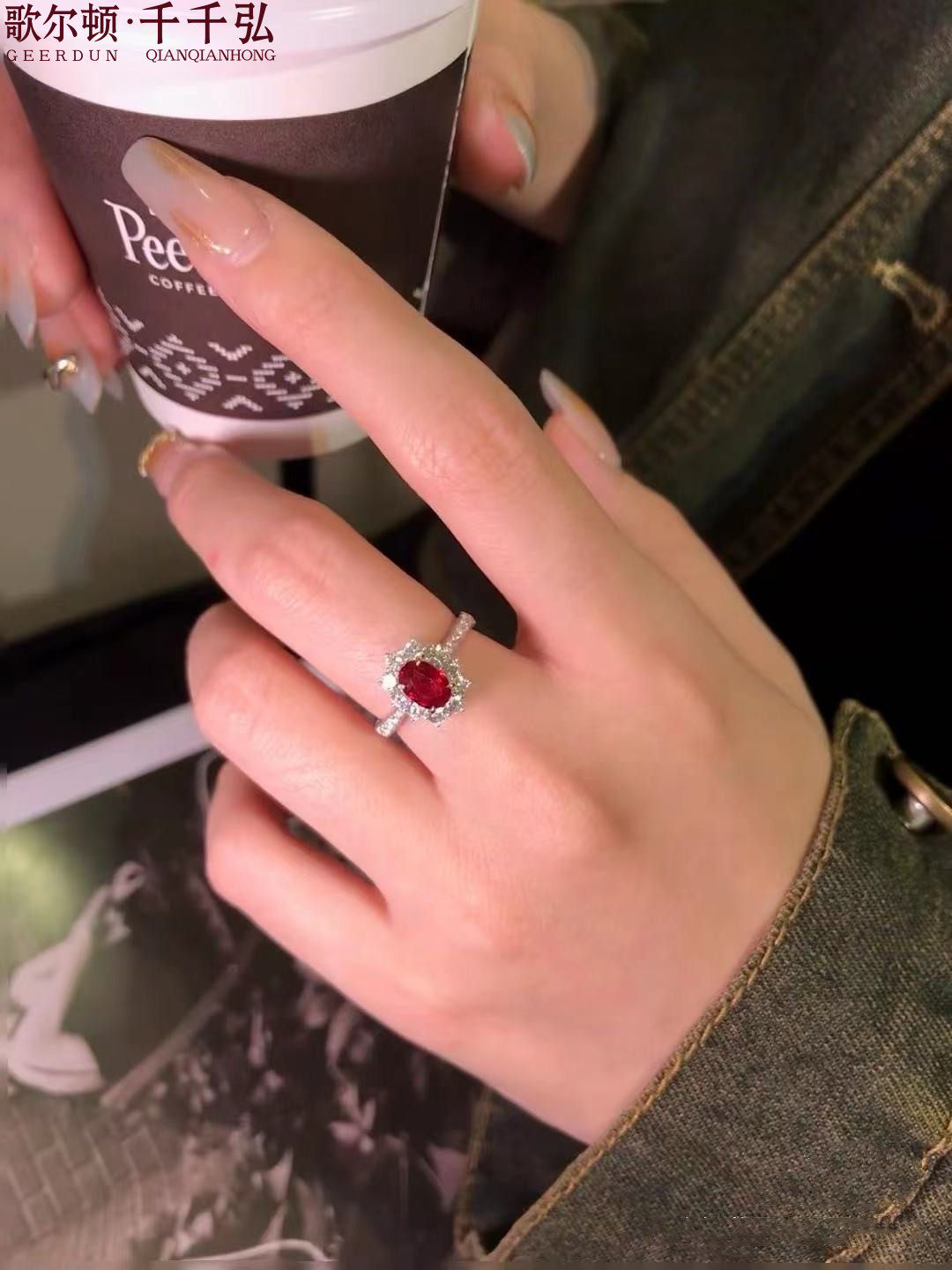 18K金镶嵌天然红宝石戒指包邮