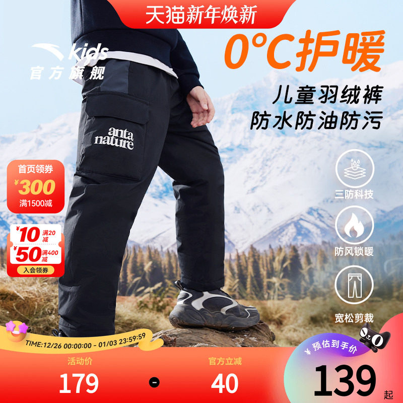 安踏儿童男女童羽绒长裤冬季2025新款舒适保暖抗寒运动三防羽绒裤