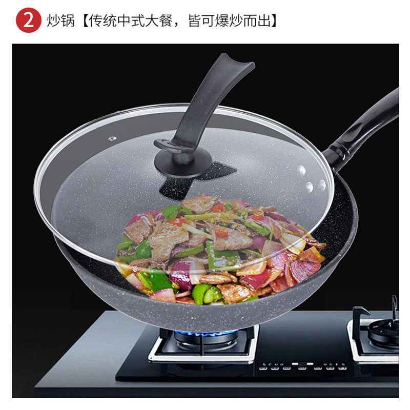 麦饭石锅具套装组合全套家用不粘锅三件套电磁炉专用炒锅汤锅煎锅