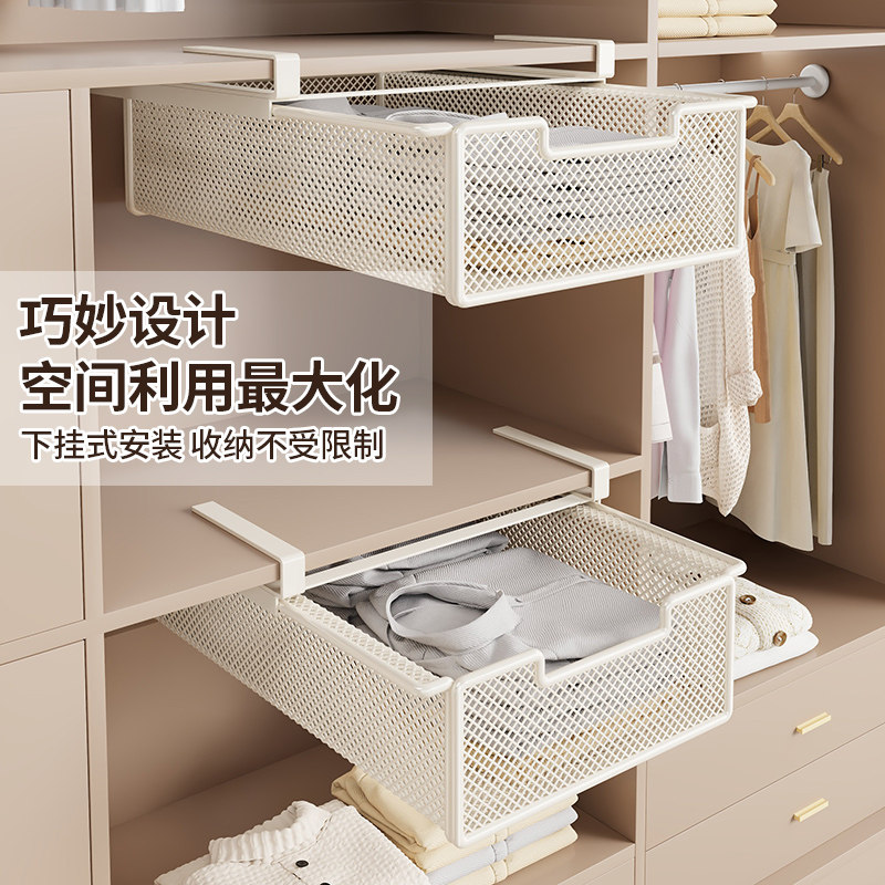 衣柜抽拉收纳筐下挂抽屉式拉篮柜内分层神器悬挂式袜子内衣搁板盒