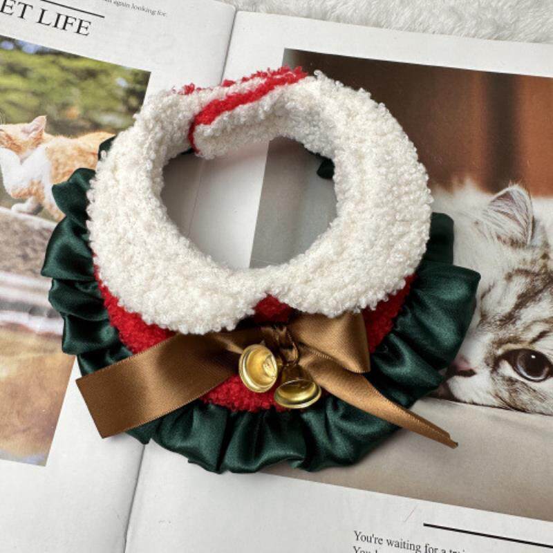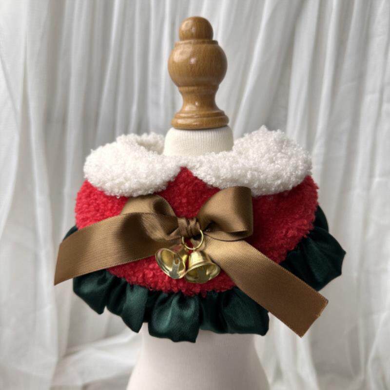 圣诞节蝴蝶结宠物蕾丝假领花边口水巾新年狗狗猫咪围嘴法牛围脖