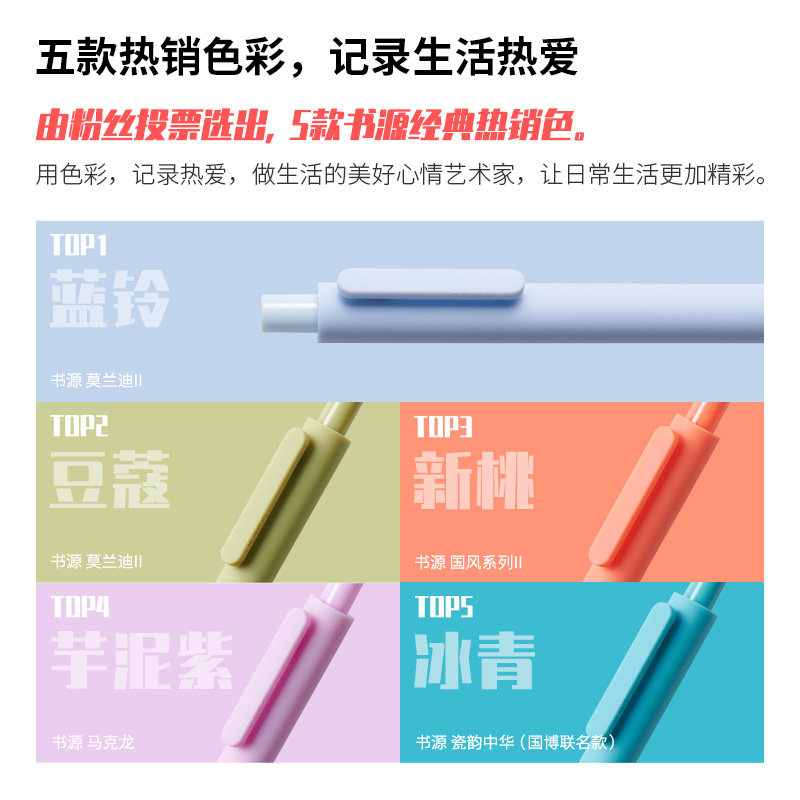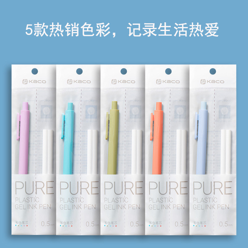 热销流行色 KACO书源中性笔学生用0.5mm按动式子弹头莫兰迪色系彩色笔多色手帐笔绘图做笔记划重点标识签字笔