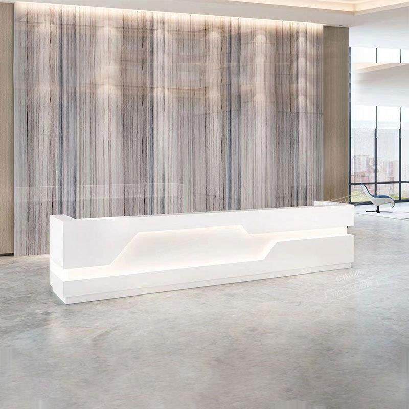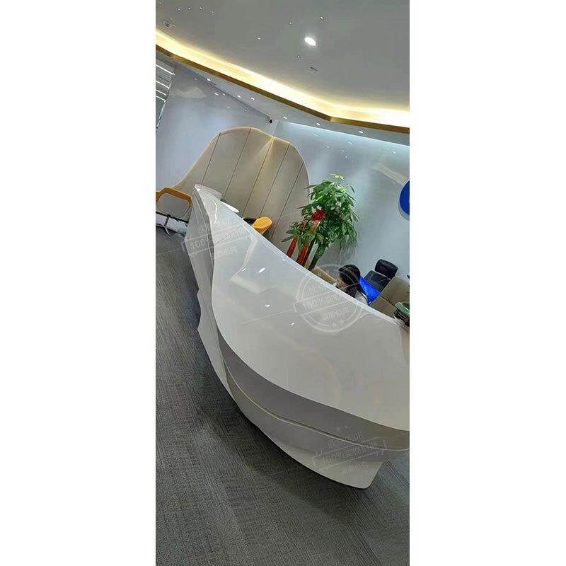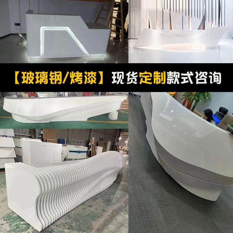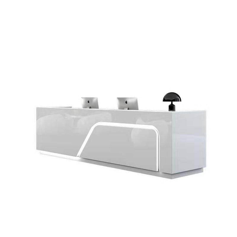 前台亮光烤漆带灯光接待台公司商场超市简约时尚吧台收银异形柜台
