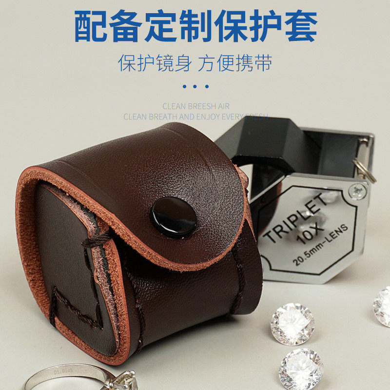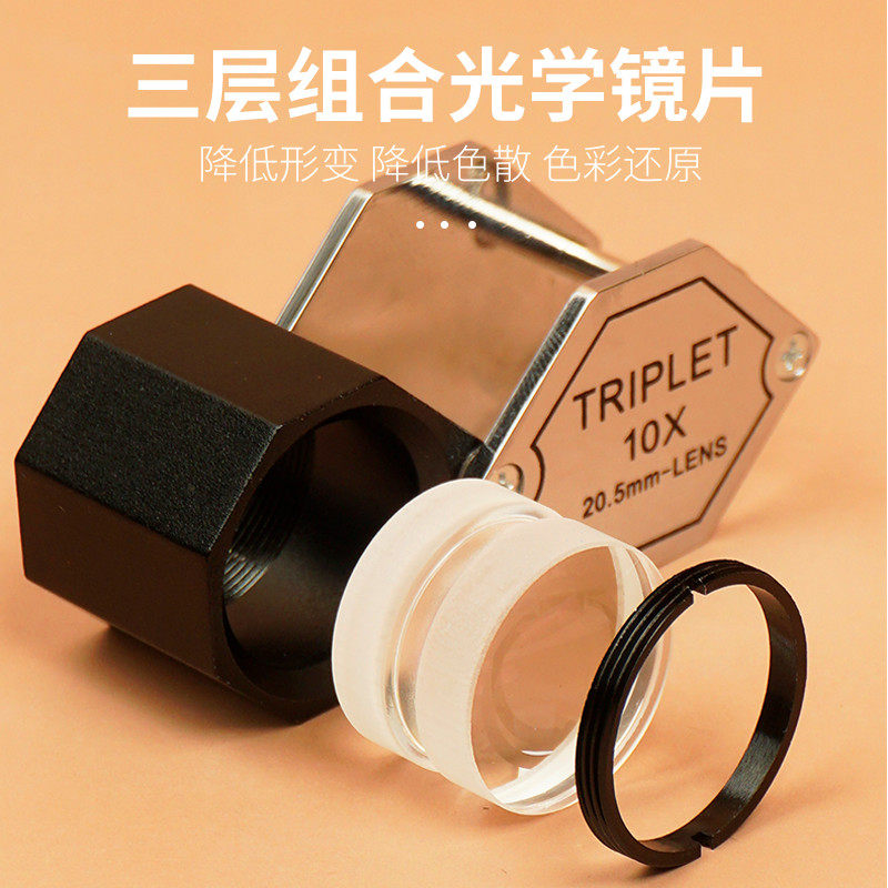 拜斯特10倍珠宝放大镜三组合镜片triplet鉴定专用高清镀膜带皮包