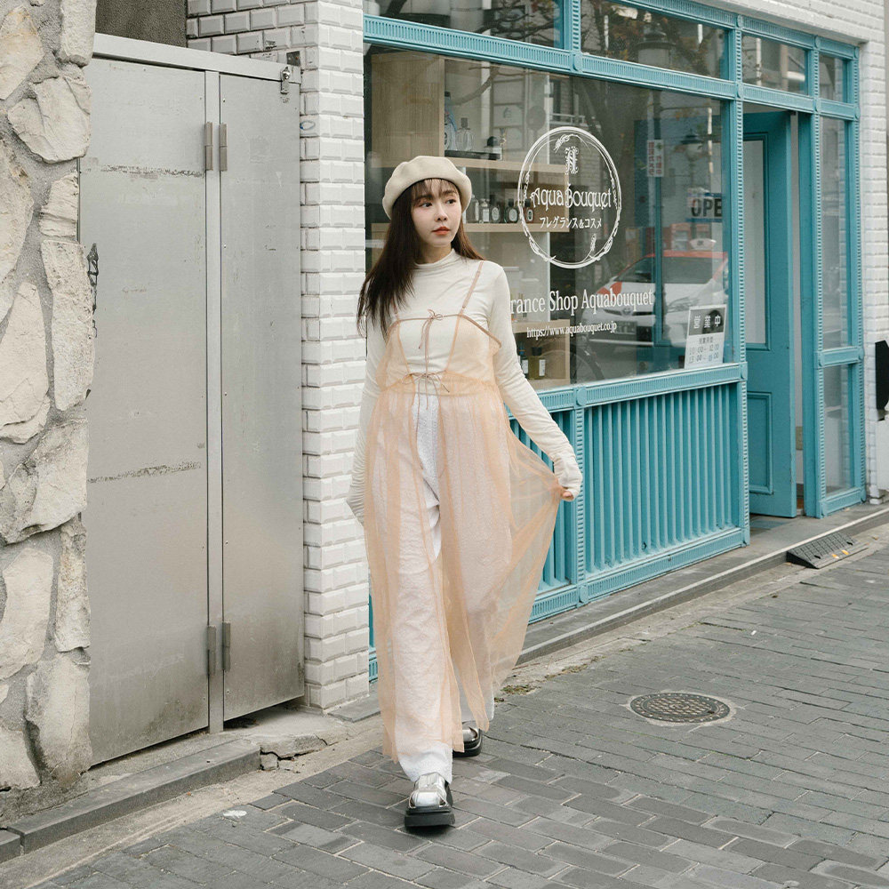 QUEENSHOP 2025秋冬新品女装简约素面绑带两穿吊带罩衫01098804