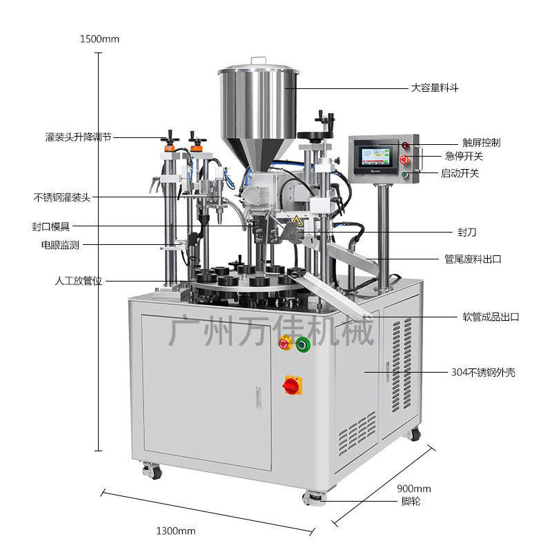 洗面奶软管自动灌装封尾机护手霜软膏PE管铝塑复合管超声波封尾机