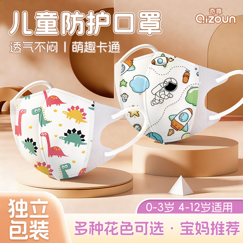 儿童一次性口罩3D立体5-12岁透气不勒0-3岁3-6岁小孩口罩独立包装