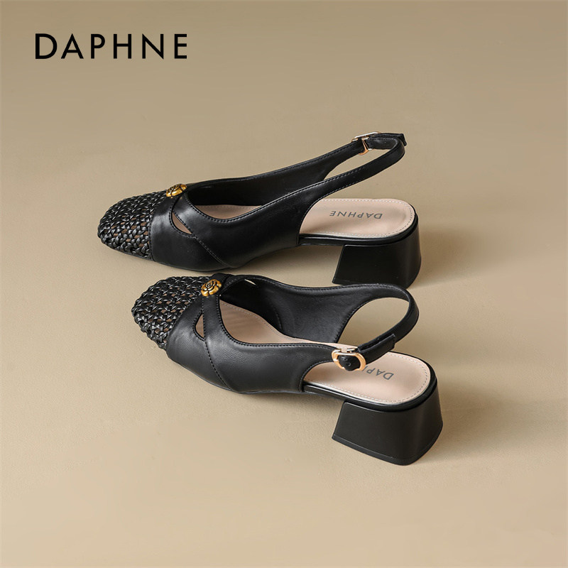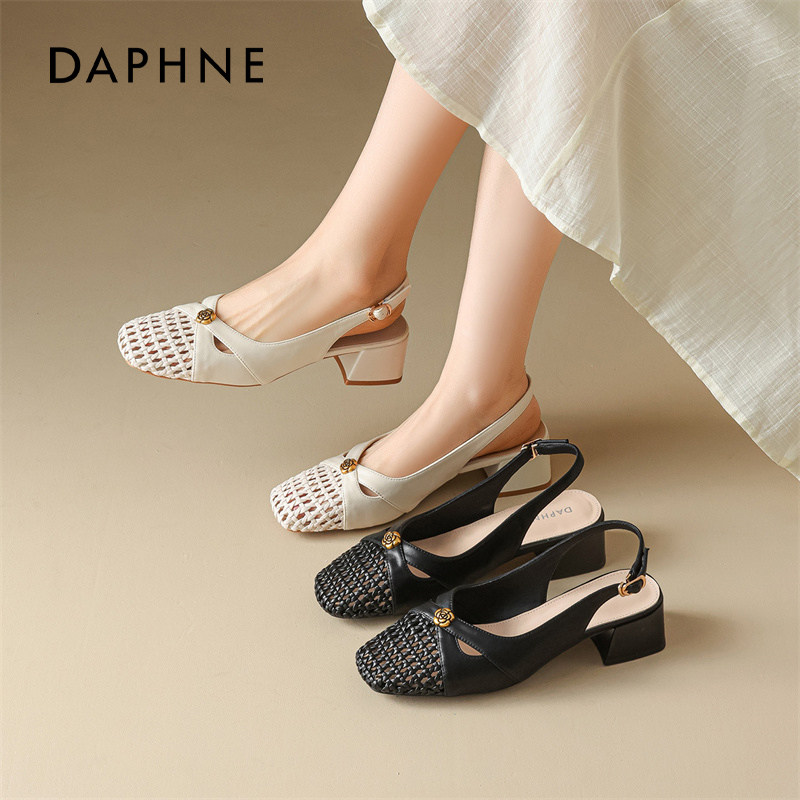 达芙妮山茶花高跟凉鞋女2026夏季新款绝美玛丽珍透气编织包头凉鞋