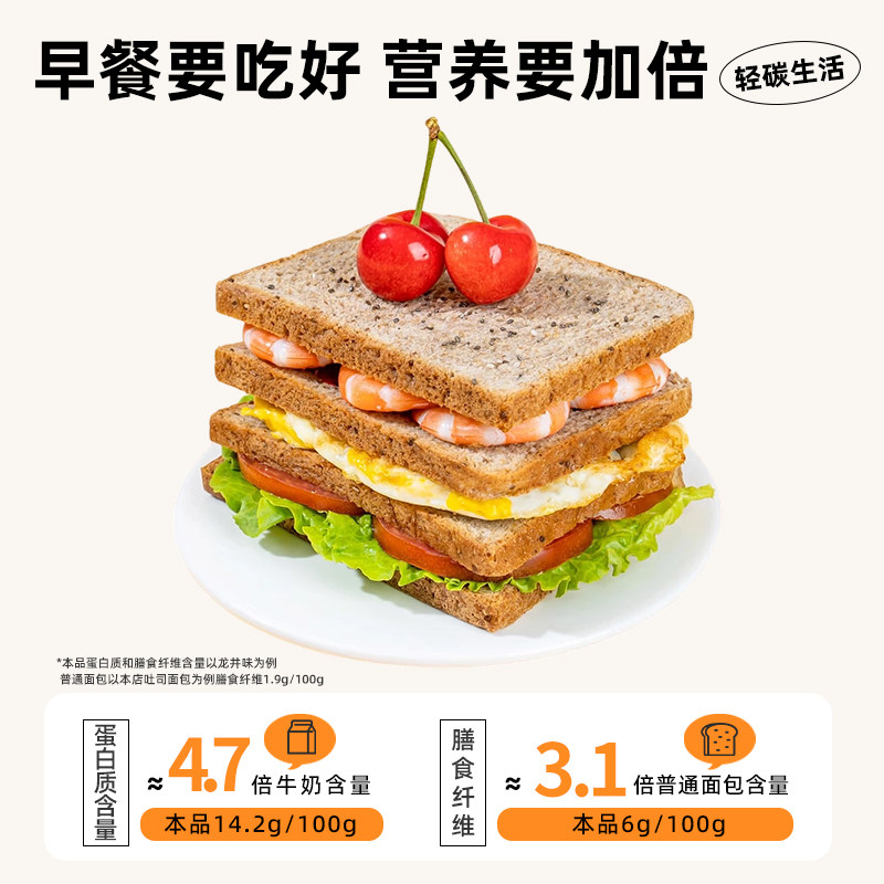 山海有约全麦吐司面包早餐多口味代餐粗粮轻食饱腹零食低脂吐司片