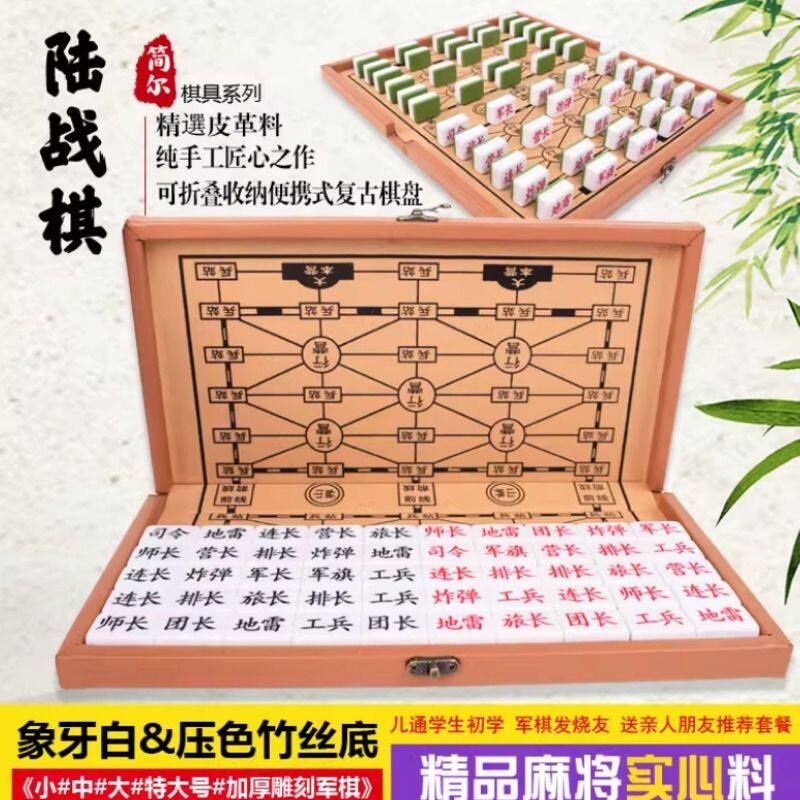便携式军棋陆战棋大号实心麻将料军旗套装折叠收纳棋盘学生成人