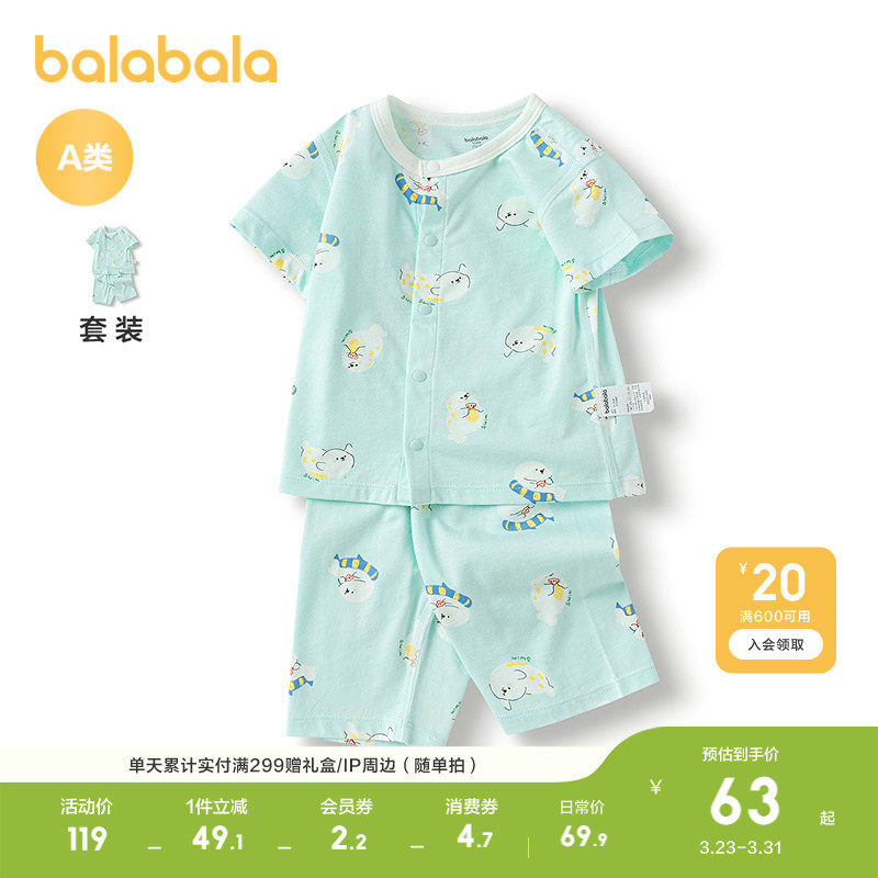 巴拉巴拉童装宝宝睡衣新生儿家居套装夏装清爽2026新款婴儿衣服萌