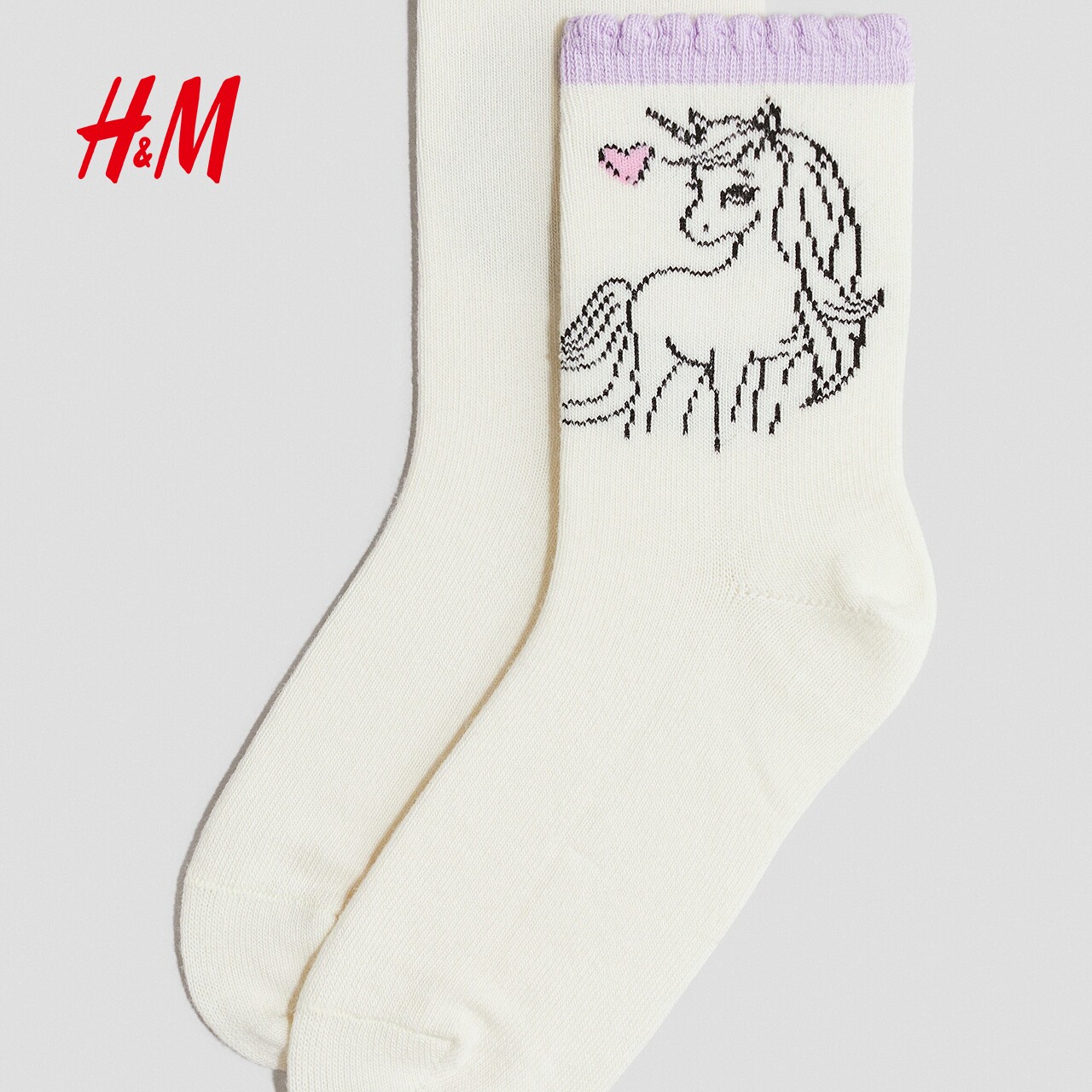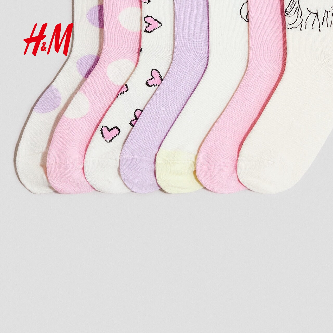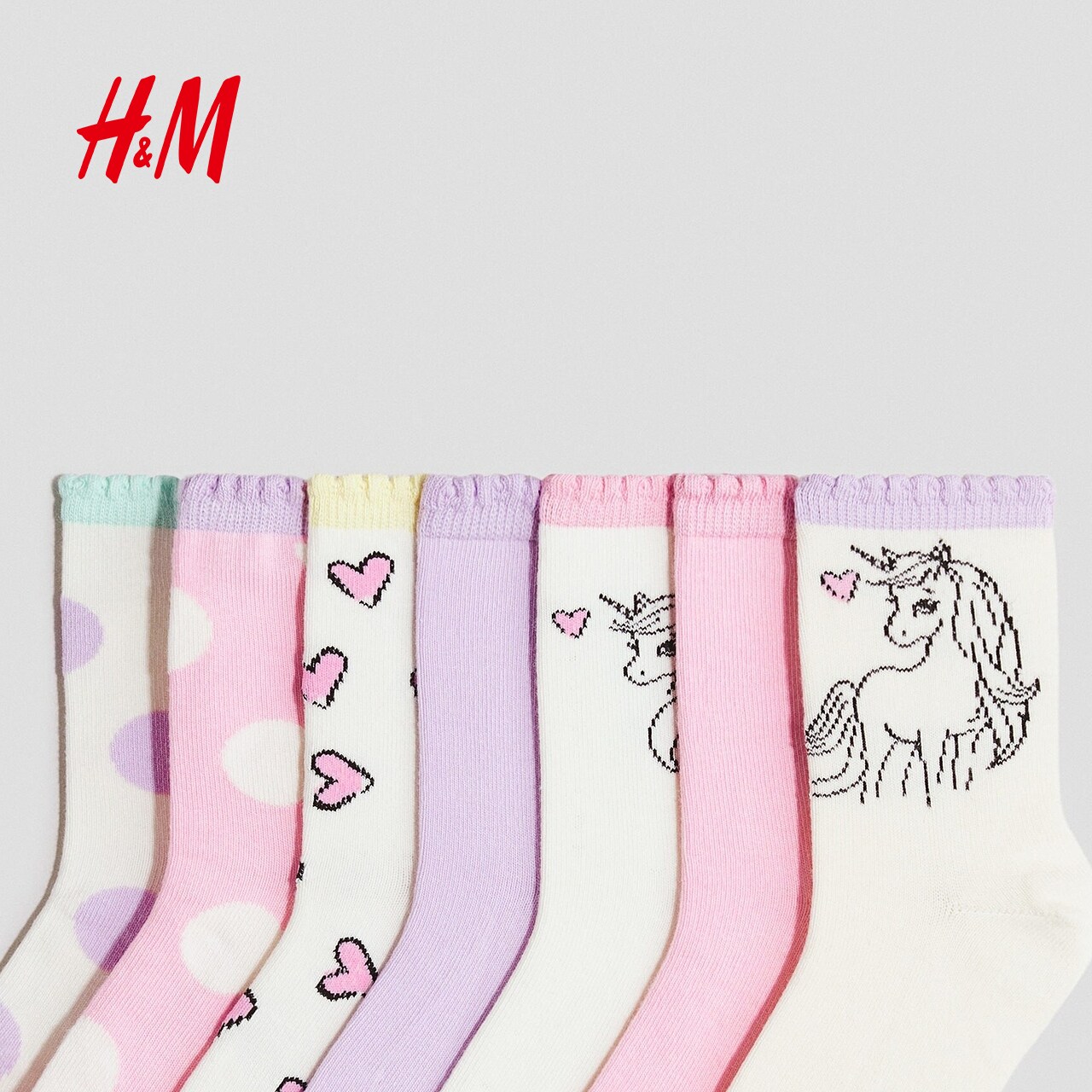 HM童装儿童女童袜子7对装春季休闲棉混纺印花针织袜1143058