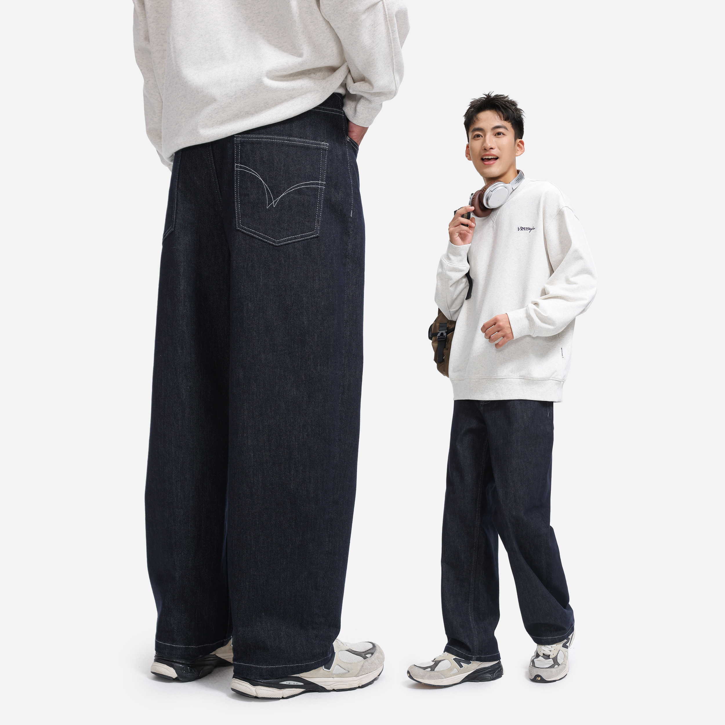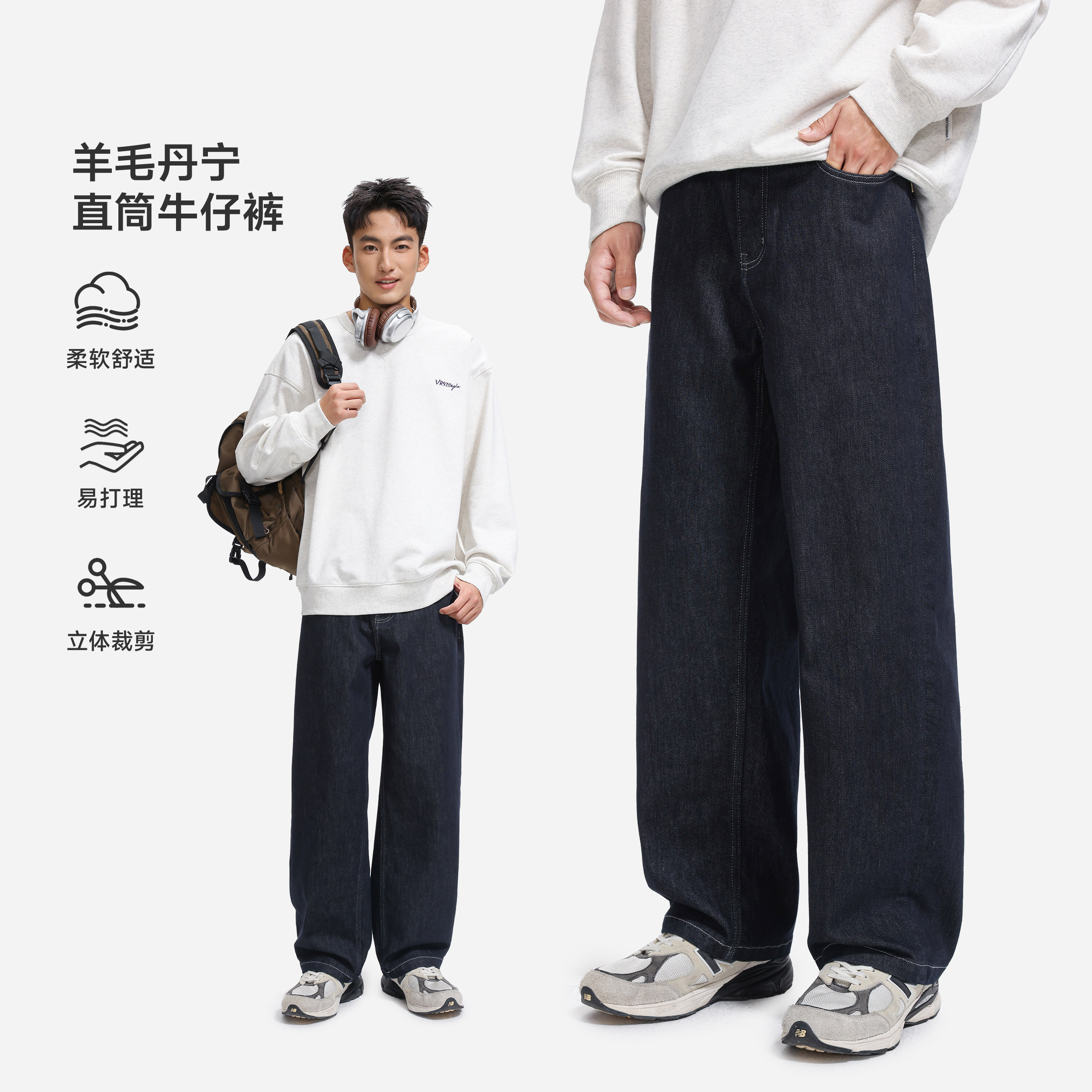 VR97羊毛丹宁牛仔裤磨毛男秋冬新款宽松直筒休闲经典原牛保暖长裤