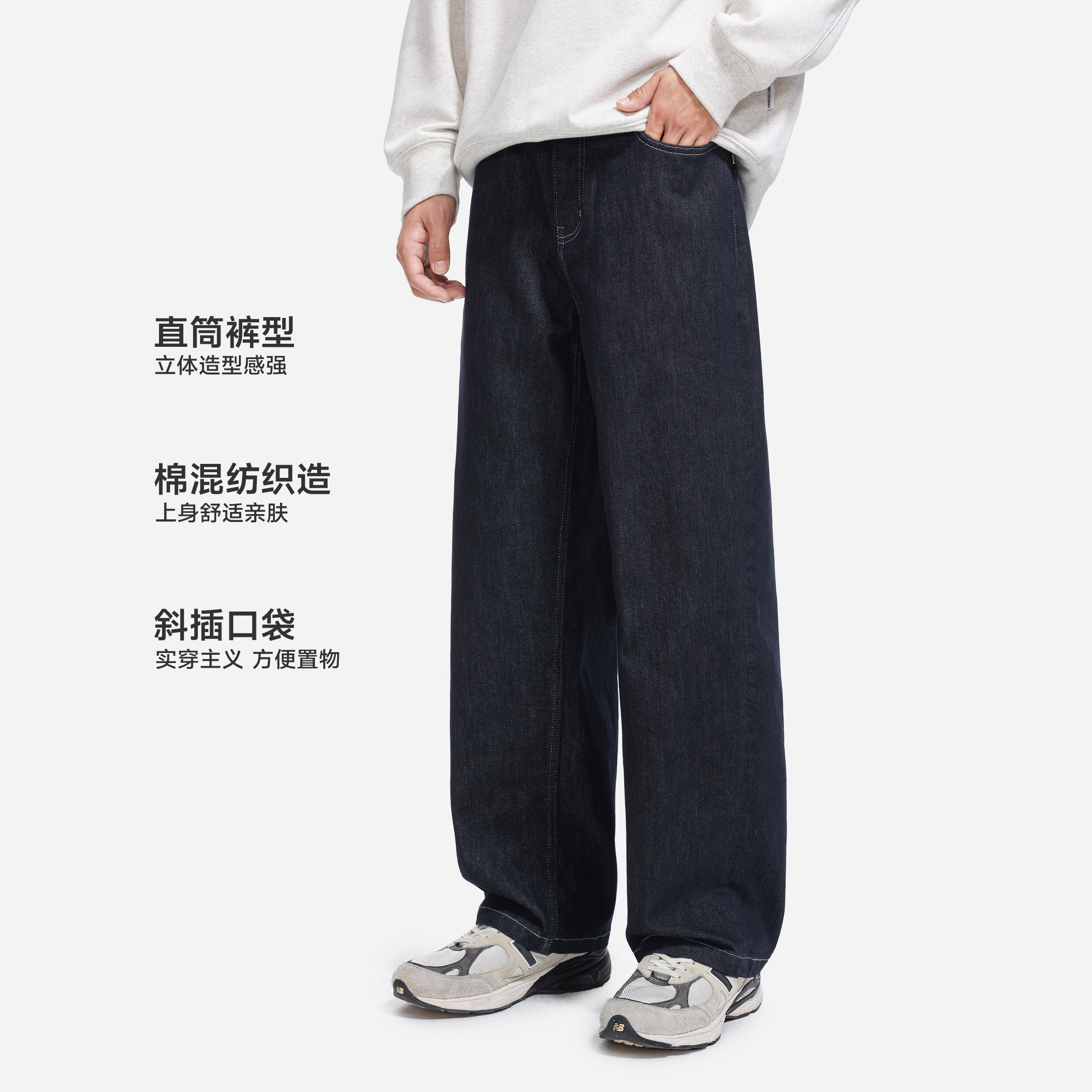 王安宇同款森马牛仔裤男做旧复古阔感弯刀裤宽松弧形裤2025冬新款
