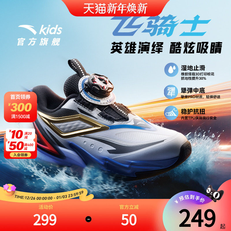 安踏儿童运动鞋宝宝飞骑士5.0平衡车鞋2025秋冬款男小童跑鞋纽扣
