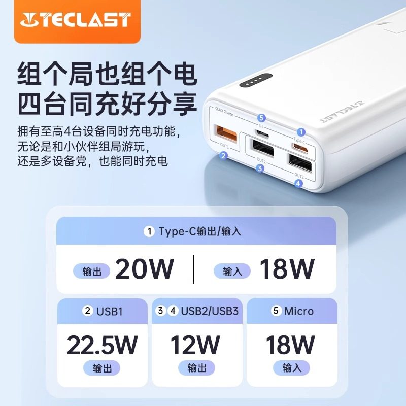 【充电宝3c认证可上飞机】台电20000毫安2025新款大容量22.5W超级快充标识适用小米15苹果17手机专用移动电源