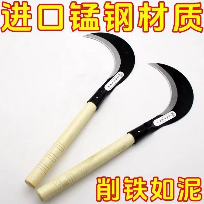 进口锰钢镰刀农用割草刀修枝砍柴弯刀砍割两用镰刀收割小麦砍